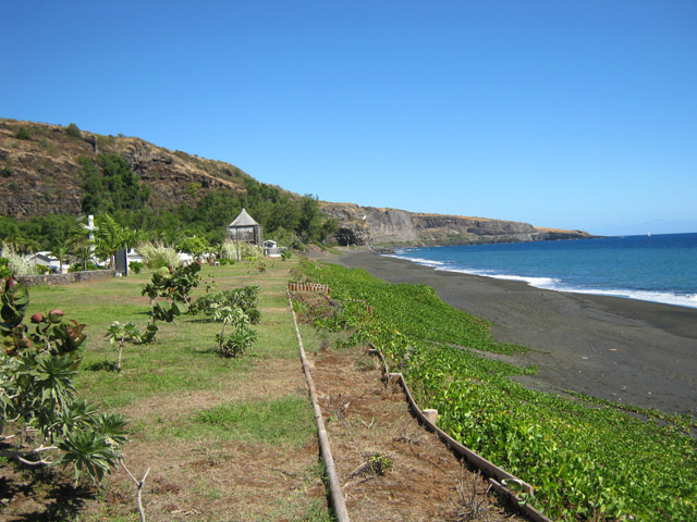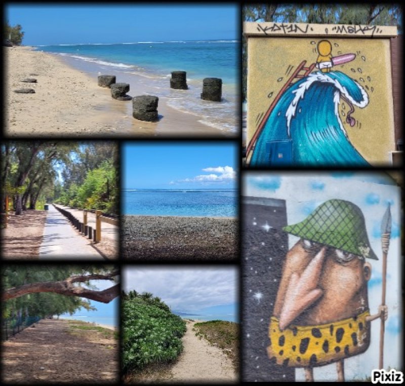 La randonnée débute à la partie la plus au Sud de la boucle de l'Etang Saint-Paul, sur le parcours sportif. Le mieux, en venant du Nord est de prendre la plage avant le Bras de l'Etang Saint-Paul et de marcher sur la plage de sable gris ou de galets (et bien sûr de détritus) jusqu'à la ville de Saint-Paul qu'on longe sans difficulté (Photo 1). De nombreux sites ou curiosités sont à visiter aux alentours de long débarcadère qui s'avance dans la mer (Photo 2). On peut citer par exemple la longère, la mairie, l'hôtel Lacay ou le mémorial sur l'esclavage. Marcher sur la plage jusqu'aux alentours du cimetière (Photo 3) ou prendre la Rue de la Baie si on ne veut pas de sable dans les baskets ! Ce lieu historique se rejoint facilement à partir de la plage en grimpant vers le mur d'enceinte (Photo 5). Il faut compter une bonne heure pour le visiter correctement afin de passer près des tombes les plus caractéristiques des personnages les plus connus de la ville (Photo 6). En tenir compte pour les temps de cette randonnée. On peut, à partir du cimetière, soit rejoindre la route de Boucan Canot soit poursuivre sur le sable et les plaques de bord de mer et retrouver la route aux premiers rochers à l'approche du Cap la Marianne (Photo 7). Comme la pointe est assez rocheuse et un peu battue par les vagues, il est préférable, au niveau du tunnel, d'emprunter la piste cyclable qui longe la route. Dans ce cas, passer la Cap en faisant attention à la circulation près du tunnel puis retrouver au plus tôt la Plage des Petits Récifs (Photo 8). Marcher sur les rochers en fin de plage et remonter sur la route par un des sentiers de pêcheurs situés avant la muraille verticale. Longer la côte par la route jusqu'au parking du Cap La Houssaye pour une agréable halte. Le parking sert aux nombreux touristes venant visiter le Trou du Cuisinier , le Cap La Houssaye et ses bassins (Photo 9). Traverser cette zone puis emprunter le sentier qui se situe entre le mur qui longe la route et le rempart pour rejoindre l'ancienne route désormais impossible à deviner mais remplacée par un petit sentier sans difficulté (Photo 10) qui longe le Rocher du Chien et rejoint à nouveau la route. Prendre immédiatement à droite le sentier qui descend près d'une grande pancarte du Conservatoire du Littoral pour aller à la rencontre des grands platiers des Eaux Blanches coupés par de puissantes vagues qui ont donné leur nom au lieu. La seule difficulté (Photo 11) consiste à attendre que le mer se retire pour passer sans danger les deux cassures de la roche en sautant de roche en roche ou en descendant sur le sable avant que la vague revienne. On se retrouve alors sur la plage de sable jaune du Cap Champagne qui rejoint le Cap Boucan Canot et son hôtel près des rochers. On peut longer la mer sur les rochers mais il vaut mieux sortir par le sentier de plage et longer la route pour bifurquer aussitôt à droite vers le sable jaune (Photo 12). Marcher sur cette plage très fréquentée jusqu'à de nouveaux rochers du Cap Homard qu'il est impératif de contourner par la route à moins que l'eau soit calme et qu'on se mouille un peu les pieds (Photo 13). Il est possible, avant de poursuivre, de grimper sur la falaise du Cap Homard pour une belle vue sur les plages alentour. Quelques monolithes trônent également sur la plage et procurent de l'ombre aux baigneurs (Photo 14). Des propriétés privées empêchent de retrouver rapidement la plage. Suivre alors la route sur 200 mètres avant d'emprunter la deuxième piste à droite qui permet de s'en rapprocher, juste après la Pointe des Aigrettes. Le cheminement se poursuit sur le sable jaune jusqu'à la funeste plage des Roches Noires (Photo 16). En arrivant à l'estuaire de la ravine, on ne peut traverser. Chercher, en bout de plage, la bonne route qui amènera rapidement à la passerelle qui enjambe le large estuaire de la Ravine Saint-Gilles en dominant le port du regard (Photo 18). Comme le cimetière en début de périple, l'aquarium demande une trop longue halte pour le visiter (Photo 17). Prendre plus loin la première route à droite qui permet de retrouver le désormais très classique sable clair (Photo 19). Aucune difficulté pour suivre cette longue plage qui se termine avant la Pointe des Trois Bassins (Photo 20). Rejoindre ainsi l'Ermitage les Bains et les centaines de filaos poussant sur le littoral (Photo 22). En profiter pour étudier la lente invasion du lagon qui ronge, année après année, le sol en déracinant ces filaos (Photo 24). Cette destruction présente au moins l'avantage d'observer de superbes natures mortes (Photo 25 et 26). Le seul obstacle, si on a toujours les pieds secs, est la traversée de la Ravine de l'Ermitage qui finit sa course pour rafraîchir le lagon (Photo 27) mais s'évite par une passerelle très proche. Le reste du trajet ne présente aucune difficulté et peut s'effectuer sous les filaos rencontrés depuis déjà quelques kilomètres.