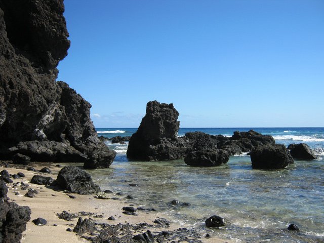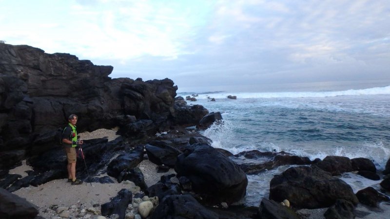 Cette sortie n'a vraiment aucun intérêt en tant que randonnée pure mais elle s'inscrit dans le tour de l'île en 7 jours au plus près des flots et peut résumer en quelques mots les difficultés rencontrées par les randonneurs qui seraient un jour tentés par cette aventure difficile et longue mais qui pourra laisser autant de bons souvenirs qu'un grand raid non terminé. Pas de difficulté tout au long du trajet qui peut s'effectuer à plus de 90% au plus près de l'eau. Les quelques détours n'éloignent jamais vraiment du bruit des vagues. Les temps indiqués ci-dessous prennent en compte un cheminement proche de la mer rendu difficile par les galets ou le sable omniprésent. Ils diminuent sans doute substantiellement si de longs détours sont effectués par les rues qui bordent le littoral. Paradoxalement, on est heureux de l'avoir terminée car on peut rencontrer de beaux paysages, des criques battues par les flots, des rochers biscornus, de longues portions ombragées sous les filaos, de magnifiques racines ou des pêcheurs toujours prêts à tailler une petite bavette. Hélas, les surfeurs se font de moins en moins nombreux en raison de la présence, souvent mortelle, des grands squales venus du large.