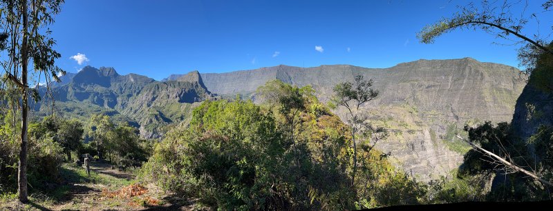 Voici une superbe randonnée qui permet de visiter le nord du Cirque de Mafate ; certainement la plus belle parmi beaucoup de randonnées dans les cirques. Le sentier est toujours en bon état et les paysages sont grandioses. L'imposant Morne de Fourche ou le fin Piton Cabris accompagnent le randonneur tout au long de la journée et changent de forme en fonction de l'emplacement du marcheur. Le sentier est facile d'accès depuis le Bélier et bien indiqué. Un parking non gardé se situe au début ; un autre, payant est situé au Piton Marmite. Il vaut mieux le prendre en cas d'arrêt pour la nuit dans le cirque. Si on effectue l'aller-retour comme sur cette fiche, les difficultés se situent au retour car la pente est assez forte alors que l'aller a été constamment en descente (ou presque !). Le passage étroit sur l'arête de Deux Fesses semble gêner certaines personnes sujettes au vertige mais comme le sentier est large, il vaut mieux marcher au milieu. En revanche, le sentier est plus étroit dans la partie Sud de Deux Fesses mais des câbles de maintien sécurisent physiquement s'ils n'y arrivent pas psychologiquement. Ce sentier est tellement attachant et beau qu'il a été intégré dans 3 randonnées qui l'empruntent soit pour aller à Grand Place soit pour revenir par le Sentier Augustave qui est lui aussi un incontournable du Nord de Mafate.
