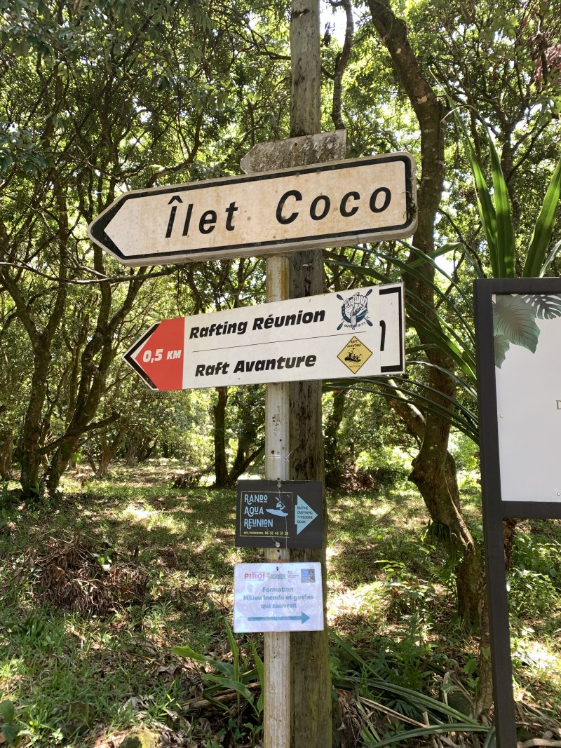 Se rendre à Saint-Benoît et bifurquer au grand rond-point proche de la Rivière des Marsouins, en direction de Bras Canot - Passer Bras Canot et bifurquer à droite en direction de l'Ilet Coco - Garer le véhicule au début de la route - Rejoindre l'îlet et franchir un gué bétonné - Emprunter la rue qui file plein ouest et se poursuit naturellement par un chemin empierré sous les letchis - Continuer sur la piste qui traverse deux fois les bras à sec de la Rivière des Marsouins (passerelle et radier) - Poursuivre sur la piste sans tenir compte du premier sens interdit réservé aux véhicules - Le deuxième sens interdit invite à prendre à droite le sentier "bord de l'eau" - Suivre le bord de la rivière sur d'énormes galets puis dans des sous-bois perchés sur la zone rocheuse qui surplombe la rivière - Quelques accès permettent de s'approcher des retenues d'eau ou des petits rapides - Poursuivre ainsi jusqu'à la fin de la sortie marquée par l'impossibilité de poursuivre à pied sec - Le retour s'effectue par le même itinéraire.