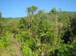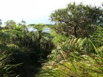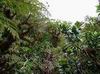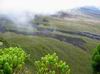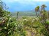 Cette sortie permet, après 3,5 heures de marche, d'avoir une vue plongeante sur le Grand Brûlé, du Rempart du Tremblet jusqu'à celui de Bois Blanc. Une heure plus tard ce sont des vues sur la Fournaise et l'Enclos Fouqué à partir du Nez Coupé du Tremblet. La montée est régulière et les seules descentes à effectuer ne durent que quelques mètres pour passer des ravines quand leur franchissement n'est pas facilité par une passerelle. On en compte d'ailleurs une bonne douzaine avant d'arriver à l'ancien refuge du Tremblet. On préfèrerait des passerelles en bois plutôt qu'en aluminium. Elles s'accorderaient plus avec le paysage sauvage des sous-bois sombres mais le bois pourrit cent fois plus vite que l'aluminium. L'abri, dans un magnifique cadre de verdure et entouré d'hortensias a bien changé depuis quelques années. Des hortensias qui l'entouraient, il ne reste plus que des pieds rabougris et tristes et une grande plaque de béton indique l'ancien emplacement du petit bâtiment. Seule la citerne d'eau est encore en place et il ne vaut mieux pas essayer d'utiliser le liquide qui se trouve à l'intérieur. Plus haut, la vue est surtout impressionnante depuis l'éruption de 2007 qui a vu s'écouler plusieurs dizaines de millions de mètres cubes de lave, brûlant tout sur son passage et grillant la végétation du Tremblet qui a bien failli devenir un véritable désert dû aux pluies acides. Depuis, la végétation a repris le dessus et hormis la trace brune laissée par la lave, on ne voit aucune différence avec les paysages d'avant 2007. Comparer pour s'en convaincre la Photo 1 et la Photo 28. La chaleur, les pluies acides et les fumées ont failli venir à bout d'une bonne partie de la région. Mais la nature est souvent la plus forte pour réparer certains dégâts.