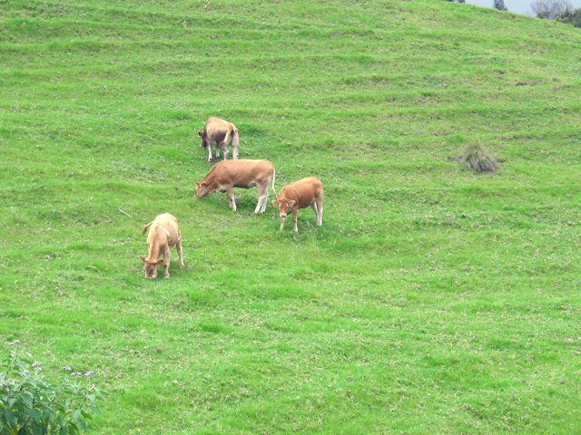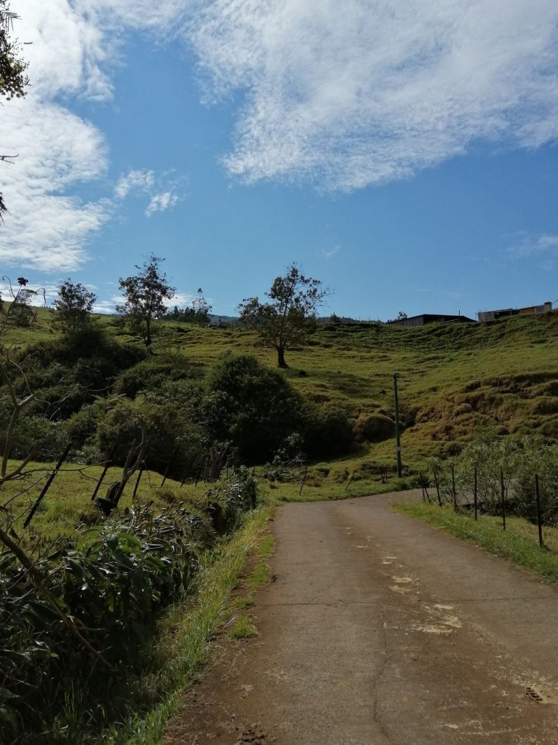 Après une météo prévue exceptionnellement ensoleillée, voici une troisième tentative d'effectuer cette belle boucle sans nuage. Perdu ! Le brouillard et même la pluie sont encore venus gâcher la balade bucolique. Une fois n'est pas coutume, c'est donc ici une boucle champêtre qui empruntera dans sa totalité des routes plus ou moins fréquentées. La verdure y prédomine du début jusqu'à la fin sans voir une seule canne à sucre. La route forestière qui redescend vers Notre Dame des Champs et qu'on emprunte au retour est un pur bonheur de calme et de nature. Les panoramas sur l'océan y sont fréquents ainsi que les troupeaux dans les vastes prairies. La circulation y est presque inexistante sur les deux bandes de roulement bétonnées qui permettent de marcher au centre sur le gazon. Les randonneurs n'aimant pas la route pourront même prendre le vélo pour aller voir de plus près ce beau circuit. Mais attention alors dans la descente sur les bandes de roulement car si la chute se termine d'office dans l'herbe, la pente peut donner assez de vitesse pour se faire mal.
