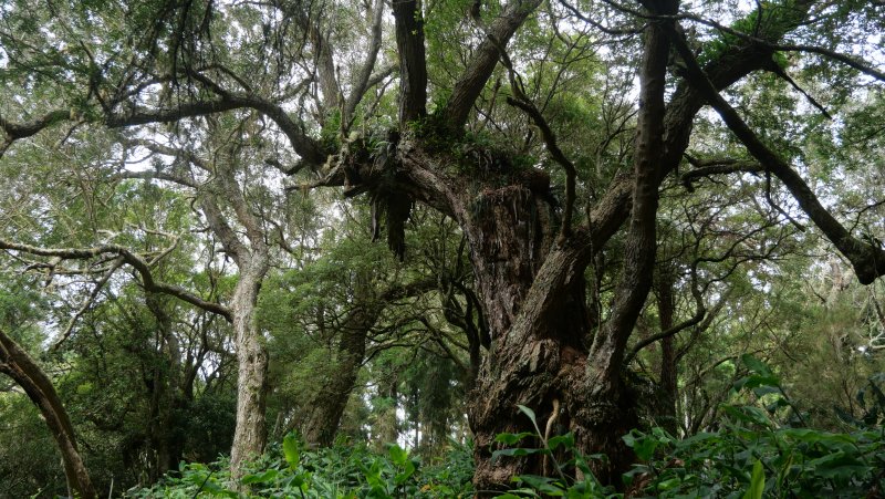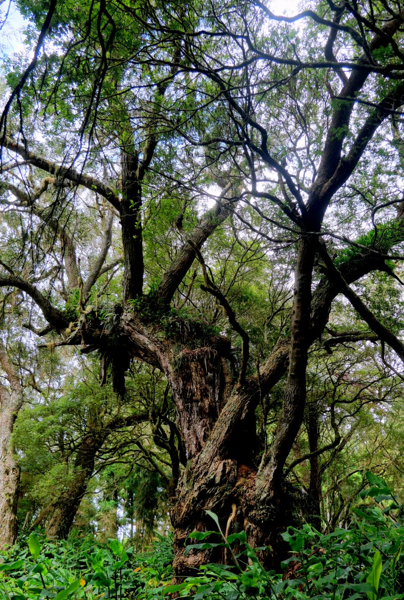 On reste quelques temps sur la même courbe de niveau avant de franchir aisément la ravine Laforge. Dans la deuxième partie s'étend un des plus beaux tamarins qu'il m'ait été donné de voir avant de retrouver les cryptomérias et une piste de débardage. La troisième partie avant de retrouver la piste VTT Papangue est plus encombrée et nécessite de franchir la ravine non nommé au droit de la ravine du Trou.