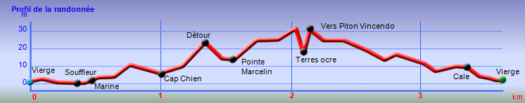 Ce circuit facile, accessible à tous, permet de découvrir une partie de la côte sauvage entre Vincendo et Langevin mais a surtout cette particularité rare à La Réunion de rencontrer des terres rouges, jaunes et ocre qui n'ont rien à voir avec celles habituellement observées lors des randonnées (voir § ci-dessous). Bien connu des pêcheurs et des pique-niqueurs de la région, ce littoral est très sauvage et les vagues qui s'y brisent peuvent être dangereuses en certaines périodes. La falaise s'effrite peu à peu aussi faut-il éviter de trop s'approcher du bord qui peut s'avérer friable. Malgré cela, il est conseillé de quitter le sentier de temps à autres et de s'approcher du littoral pour profiter davantage de la mer, des pêcheurs ou des bassins éclaboussés par les vagues. En bravant sur une centaine de mètres les laves acérées, on peut y voir deux grottes, issues d'une bouche de tunnel de lave ainsi qu'un magnifique souffleur bien connu des pique-niqueurs du Cap Poisson d'Ail. A combiner avec d'autres circuits de la région proche si un pique-nique n'est pas au programme.