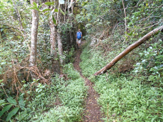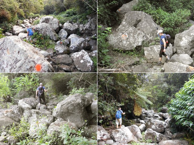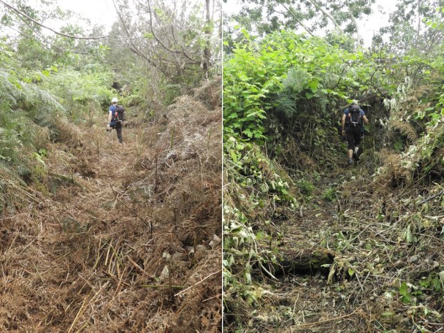 La montée pourrait se résumer en une phrase : longer la rivière durant près de 8 km en effectuant de multiples montées et descentes successives entre des arbres moussus et des vignes sur un sentier souvent étroit et aux hautes marches, parfois difficile à repérer. Les explications suivantes, certes un peu longues, peuvent apporter quelques précisions.