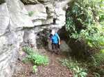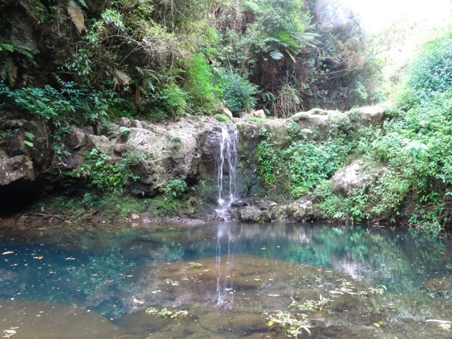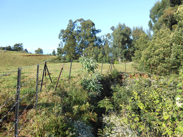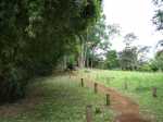 La randonnée débute au parking du Domaine Vidot pour y revenir moins de 5 heures plus tard. Prendre au plus près de la salle des fêtes et descendre une piste large qui se termine à des escaliers en bois. Le sentier de retour se trouve sur la gauche près de la grosse touffe de bambous et l'on peut également débuter par celui-ci. La montée des escaliers et de la partie herbeuse du domaine est aisée (Photo 1). Profiter au passage de beaux arbres, dont quelques fruitiers, répartis le long d'une piste herbeuse en pente faible. On peut également avoir sous les yeux quelques panoramas vers l'intérieur de l'île qui disparaîtront vite une fois sous les arbres le long de la Ravine des Cafres. Passer sous de grands eucalyptus et poursuivre vers un croisement de sentier venant de la réserve d'eau et du circuit BMX. Poursuivre le long du rempart qui domine la rivière dans une forêt de goyaviers. Le cheminement se fait principalement à plat en longeant précipices à gauche et rochers sur la droite (Photo 2). Le sentier oblique sur la droite et s'approche d'un petit cours d'eau et du captage Vidot (Photo 3). Suivre le sentier qui longe ce petit ruisseau au fond envahi de beaux taros et arriver à la route bétonnée. Le parcours de la Fraise franchit la route et se remarque à son panneau en bois. Prendre à gauche, marcher quelques mètres et emprunter des escaliers pour rejoindre une minuscule aire de repos. Le sentier file sur la droite, pénètre sous les futaies de goyaviers et autres poivriers pour effectuer quelques lacets qui se terminent près d'un énorme eucalyptus et de prairies. Prendre à droite le sentier qui va longuement remonter la ravine tout en repérant celui de gauche qu'on empruntera au retour. Il effectue déjà quelques courtes montées et descentes en longeant des barres rocheuses (Photo 4). Certaines sont moussues ; d'autres plus brutes. Il faut même prendre garde de ne pas se cogner pour passer près de certaines (Photo 5). On domine la ravine qu'on a du mal à apercevoir en raison de l'envahissement des pentes par les vignes marronnes (Photo 6). Le sentier est en général de bonne qualité même si quelques arbres tombés ou certaines branches de poivriers imposent de se baisser (Photo 7). On chemine ainsi longuement en rive gauche de parties plates dans les bois à d'autres plus pentues le long des rochers (Photo 8). Repérer pour le retour les innombrables bibes rouges qui patientent sur leur toile (Photo 9). Certaines semblent dormir, d'autres cassent une croute en dévorant une araignée plus petite ou fuient simplement si on s'approche trop près. Le sentier passe près d'une canalisation, franchit quelques minuscules ravines avant de parvenir à une plus importante au fond très rocheux. Après avoir escaladé le fond glissant de la ravine, on poursuit par un bon coup de rein entre les deux ravines sur une crête un peu raide (Photo 11). On se retrouve sur un sentier en haut du rempart qui passe sous des acacias noirs d'où l'on peut voir quelques panoramas sur les cirques (Photo 12). Après un nouveau passage de ravine (Photo 13), le sentier traverse une grande zone recouverte de goyaviers (Photo 14). Les acacias sont remplacés par de magnifiques eucalyptus à l'approche des grandes prairies (Photo 15). Le sentier, un peu dévoré par la végétation, longe la clôture proche d'un éboulis avant de replonger vers le rempart (Photo 16). Même en s'approchant de la ravine, impossible de voir les galets qui recouvrent le fond (Photo 17). On remarque en face les prairies gérées par la SCA de Bérive qui cachent un peu les nouveaux panoramas (Photo 18). On parvient, après une longue descente, à la ravine qui se traverse très facilement (Photo 19). On se retrouve pour un temps sur cette rive droite que chacun respectera en restant sur le parcours. De beaux arbres bordent ce sentier en très forte pente dont d'énormes pieds de champacs qu'on a remarqués depuis le départ (Photo 20). Les mains sont même nécessaires pour s'aider dans les coups de reins. Une fois là-haut, commence une balade à plat sous les goyaviers en longeant quelques canalisations (Photo 21). Le sentier redescend vers les zones rocheuses et moussues. De hautes falaises verticales bordent le sentier (Photo 23). Elles pourraient constituer de beaux spots d'escalade si elles n'étaient pas aussi éloignées de la civilisation. Certains effondrements récents ont laissé sur place d'énormes blocs qui se contournent facilement mais peuvent inquiéter si l'éboulis se reproduit. Après avoir escaladé un énorme bois maigre effondré également, on se retrouve près du bassin bordé d'une petite grotte et alimenté par un mince filet d'eau mais pas toute l'année (Photo 24). L'endroit, sauvage, symboliquement désigné comme fin de parcours, peut donner lieu à une pause au calme avant de repartir vers l'aval. On remarque le sentier qui repart en rive gauche pour une autre fois si on a la forme pour effectuer la totalité de la boucle, plus longue et surtout plus difficile en raison de la forte pente. Le retour, plus rapide en raison des descentes plus fréquentes, s'effectue par le même sentier. Arrivé aux prairies proches du domaine Vidot, délaisser le sentier pris à l'aller et filer tout droit entre les eucalyptus (Photo 26). La fin du circuit s'effectue sur quelques fortes descentes ou des portions plus plates dominant la Ravine des Cafres (Photo 27). On parvient très vite au point de départ, proche des grosses touffes de bambous (Photo 28).