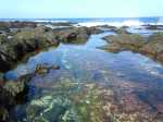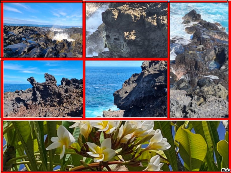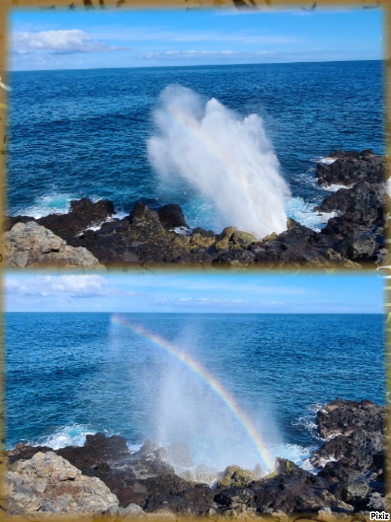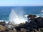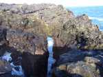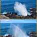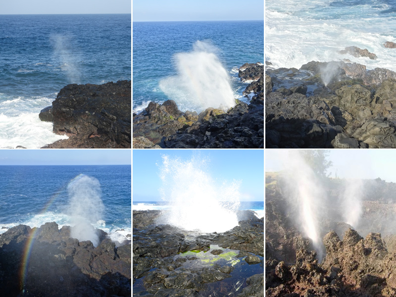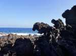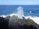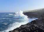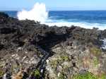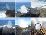 Un geyser maritime ou souffleur littoral est un orifice dans la roche bordant la mer. Les vagues pénètrent puissamment dans des cavités et compriment l'air qui y est prisonnier. Quand l'eau se retire, la pression diminue et l'air s'échappe en repoussant l'eau qui s'est engouffrée créant un geyser plus ou moins haut et important. Le plus connu (Photo 17) se situe au Cap du Portail, le plus beau à Vincendo . Cette randonnée vers Saint-Leu permet d'en apprécier une dizaine. Comme les baleines, ils sont faciles à repérer à leur panache de vapeur qui se voit de très loin quand ils sont hauts et non cachés par les falaises.