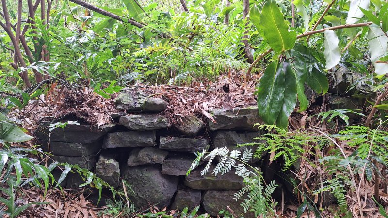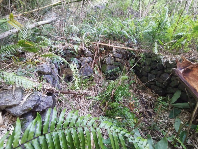 Il nous aura fallu 7h de sabrage sur 2 jours afin de parvenir à la fameuse touffe de bambous ! La monter commence au bananier en haut du chemin de la place, il faut les longer quelques mètres et partir sur la gauche, jusqu'au terrain vague recouvert de colle colle la trace est assez claire, c'est ensuite que ça se complique un peu, comme indiqué dans la fiche, on traverse une petite plaine de choka et de fougère avant de grimper sur une petite arrête, on avance et l'on parvient au premier choka que nous avons coupé, à partir de la rien de compliqué plus qu'à suivre les traces de nos coups de sabres, on parvient en 30 min a un premier manguier dans une ravine ou pousse du gingembre ! La sortie ce complique ici, il faut remonter 10 mètre droit vers l'énorme tas de brindilles sec, le traverser et partir vers la gauche, notre passage monte tout droit sans trop de détour, le sol est instable et glissant (attention aux chutes de pierre pour ceux qui marchent derrière !!) la moitié des arbres ne peuvent servir d'appuis à cause de leur fragilité. Certaines portions longeant le rempart ou même certaine barre rocheuse à franchir peuvent donner le vertige. En 1h15 (maintenant que le chemin est dégagé) on atteint un deuxième manguier, on continue de suivre la trace qui ici est nette le long du rempart, 5 min plus tard, vous êtes presque sur l'ilet, deux choix s'offre alors a vous : continuer vers la trace rando piton (ça monte encore et nous n'avons pas dégagé les 200 derniers mètres) ou suivre notre trace qui file à gauche vers la touffe de bambou ou l'ont peu observé différents arbres fruitier comme des pieds banane, goyavier ou même des Kambars, on trouve aussi autour des bambous des vestiges d'abris en pierre qui ont du servir à s' abriter il y a fort longtemps Une prochaine sortie prévoit de rejoindre la trace randopiton depuis la touffe de bambou. Ps la monter entre les 2 manguiers est compliqué et dangereuse, c'est une pente (comparable à celle du rempart de l'ilet des orangers ou du rempart rive gauche dans la rivière des marsouins) mais ici le sol est friable et instable de gros rocher ce dérobé sous nos pieds lord de la monter, la descente, elle, ressemble plus à une glissade contrôler. Quelques endroits peuvent donner le vertige. Nous n'avons pas vraiment suivi la trace randopiton (pas de GPS fiable en ma possession).