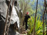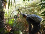 Le sentier du Petit Serré au Tapage ?: Inscrit au programme de randopitons.re depuis longtemps, confirmé par des gramounes du village du Petit Serré, reconnu au départ par François qui avait même dégotté une vieille carte, il était temps pour nous de nous lancer dans l'aventure. Si la gramoune rencontrée un jour qui disait rejoindre sa grand-mère chaque dimanche pour une visite familiale avait encore les jambes pour refaire le pèlerinage, elle serait fortement déçue. La végétation, sans pitié, sans respect pour les gens ayant vécu là des décennies à tout envahi. Les chocas font 3 mètres de large et les galaberts ont ici les mêmes épines qu'ailleurs. Si on rajoute les éboulis franchissables, les fourmis par milliers, la chaleur, il va sans dire que cette sortie extrêmement sportive ne s'adresse qu'à la vingtaine de fous que compte la Réunion et qui se sont pas arrêtés par quelques griffures, hors sentiers où multiples hésitations. Déçus de n'avoir pas relié le Tapage il a fallu se contraindre à abandonner les recherches après avoir dépassé le sentier de l'Îlet Bleu. Il faut aussi préciser que le GPS dans ces falaises abruptes est précis à 200 mètres près !!! Un sentier partant du Tapage pourra également faire l'objet de recherches futures.