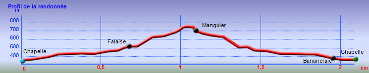 Bonne chance donc aux courageux inconscients qui poursuivront le défrichage et qui nous permettront un jour de changer les textes et photos de cette page pour une traversée hors des sentiers battus en direction des Makes ou du Tapage. Une fois défriché, on marche jusqu'à trois fois plus vite qu'avec un coupe-coupe à la main. On s'en rend d'ailleurs compte à la descente où on est étonné de revenir si vite au village.