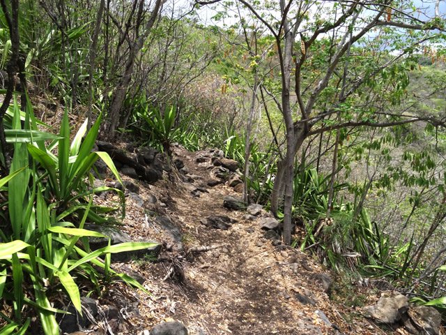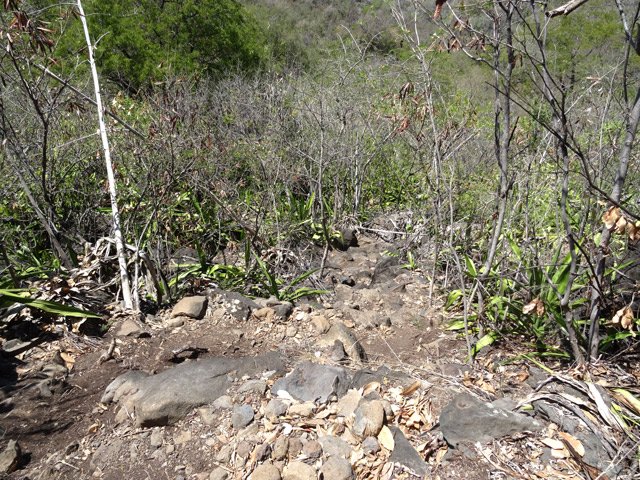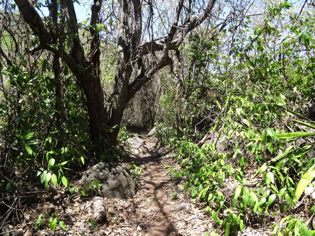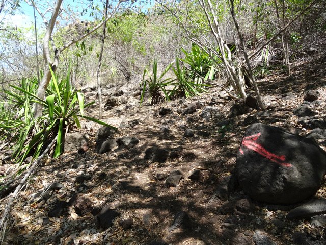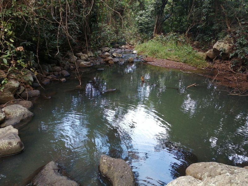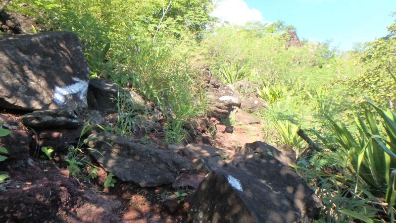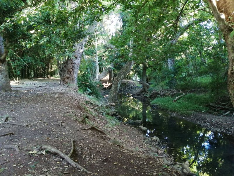 Agréable boucle quand on commence avant que le soleil surgisse au-dessus de la crête, la chaleur est très supportable avant 7 h du matin. De l'eau dans le bassin Gabriel (photo 1) mais pas très limpide. La partie entre les bambous et la ravine en eau est jolie mais trop courte ! Le tuyau noir est là et il y a une corde grise environ 40 m plus loin.