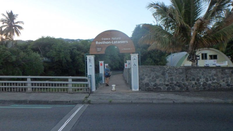 Se rendre à la Possession et rouler sur la Rue Hubert Delisle jusqu'au pont sur la Grande Ravine des Lataniers - Se garer sur un parking entre la route et la rivière et rejoindre le sentier très proche du pont - Longer la Grande ravine des Lataniers sur un beau sentier bordé de rambardes - A la fin de ce sentier, prendre à gauche et traverser la ravine - Arriver au Parc Rosthon et le traverser en suivant les pancartes et les cailloux jaunes vers la droite - Prendre la piste et la suivre sans tourner à droite aux deux premiers embranchements - Rejoindre, toujours sur la même piste, le gué de la Petite Ravine des Lataniers puis remonter sur la droite en direction de la Route de la Montagne - Passer devant des citernes rouillées, poursuivre vers la gauche et arriver à l'aire de repos près de la RD41 - Poursuivre vers l'est en franchissant une passerelle et entamer un longue descente jusqu'à la ravine - Au croisement, emprunter le sentier de droite et rejoindre le sentier pris à l'aller puis franchir à nouveau le gué dans l'autre sens - Bifurquer à droite sur la piste et rejoindre le verger - Se diriger vers la Petite Ravine des Lataniers et la suivre jusqu'à la sortie du parc par un sentier - Longer la rivière puis remonter sur le sentier du départ en escaladant la murette grâce à un tuyau installé là comme câble d'escalade - Rejoindre le parking par la droite en direction du pont sur la Grande Ravine des Lataniers.