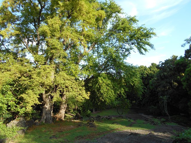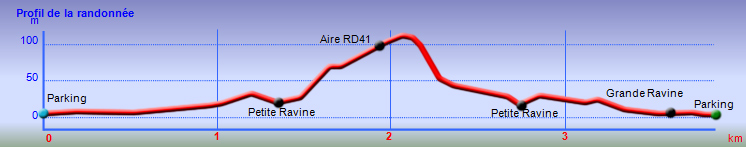 La randonnée débute à la Rue Hubert Delisle à la Possession, près du pont qui enjambe la Grande Ravine des Lataniers. Suivre le sentier qui la longe en rive gauche jusqu'à s'approcher au plus près de la ravine pour la traverser sur des galets très souvent à sec. Le Parc Elizabeth Rosthon débute de l'autre côté. Prendre à droite et emprunter la large piste bordée de gros galets (Photos 2 et 3). En fin d'année, les mangues pourrissantes tombées au sol font perdre un peu de charme à l'endroit qu'on traverse très rapidement. Poursuivre sur la même piste devenue herbeuse (Photo 4), bordée d'acacias, bois noirs et tamarins. Laisser la première piste qui part vers la Kalla puis la deuxième qui monte vers la carrière. Toujours suivre la piste principale et terminer par un sentier qui s'enfonce sous les arbres avant de franchir la Petite Ravine des Lataniers sur un gué facile mais aux galets branlants. Le sentier se poursuit dans une végétation plus fournie qu'au départ. Prendre le sentier de droite le plus marqué par les passages et entamer une courte mais assez forte pente caillouteuse comportant de grandes marches. Plusieurs embranchements se rencontrent dans cette montée. Prendre plutôt vers la gauche pour rallonger un peu sans toutefois utiliser le sentier qui descend vers la ravine. Le sentier se finit à la route et rejoint une aire de repos offrant de beaux panoramas sur la mer (Photo 9). Repérer sur la gauche l'escalier qui débute sous des tamarins. On remarque bien le sentier qui se poursuit vers le haut en passant près d'un pylône électrique (Photo 11). Un autre sentier part sur la gauche mais se termine 150 mètres plus loin. il est utilisé par les habitants pour éviter de longer la route pour gagner l'aire de repos. Le sentier reste tout d'abord agréable à travers les acacias et chocas (Photo 12). Très vite, il descend de manière parfois abrupte sur des milliers de cailloux surchauffés (Photo 13). Au premier croisement, prendre sur la droite et longer la Petite Ravine des Lataniers par un cheminement à plat entre les gros cailloux (Photo 16). On passe près de vestiges puis on rejoint le large sentier pris à l'aller (Photo 18). Tourner à gauche et retrouver l'itinéraire pris après le gué. Franchir à nouveau ce gué et prendre plus loin la piste partant sur la droite. Elle chemine dans un beau paysage composé de hautes herbes où poussent de très grands tamarins (Photos 19, 21 et 22). Les tamarins cessent pour être remplacés par les manguiers. Au lieu de rejoindre rapidement l'entrée du parc par la gauche, privilégier une balade vers la droite pour rejoindre des bambous et les berges de la Petite Ravine des Lataniers (Photo 23). La suivre en rive gauche jusqu'à un sentier qui longe le fond de la ravine. Marcher en rive droite le plus longtemps possible. Quand le sentier disparaît presque et que la marche devient plus difficile, viser le tuyau noir qui a été accroché à la rambarde métallique sur le mur d'en face (Photo 24) et rejoindre le sentier de départ par une montée ludique de 2 mètres qui amusera les enfants. Le véhicule n'est plus qu'à 200 mètres.
