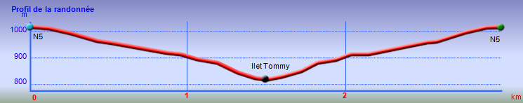 Ce court aller-retour a été effectué pour trouver une voie pour rejoindre le Bras de Benjoin à partir du petit îlet Tommy. La falaise abrupte ou très friable par endroits décourage de poursuivre plus avant. Un fond de ravine, étroit et abrupt, permet de s'approcher de la rivière, mais ce n'est plus de la randonnée. L'Îlet Tommy est un endroit privé relié par une piste large et aisée. On peut donc l'effectuer sans effort mais il est rappelé qu'on ne doit pas pénétrer dans les cultures et encore moins prélever un fruit ou un légume. Les paysages sont arides et sans grand intérêt mais le Gros Morne de Gueule Rouge vu du pied a de quoi impressionner avec sa muraille quasi verticale de 500 m de hauteur. Après avoir été délaissé, l'îlet s'est consacré un peu à la vigne avant de faire comme beaucoup d'agriculteurs du cirque en misant sur la culture de la lentille.