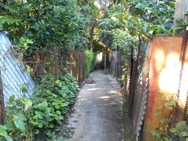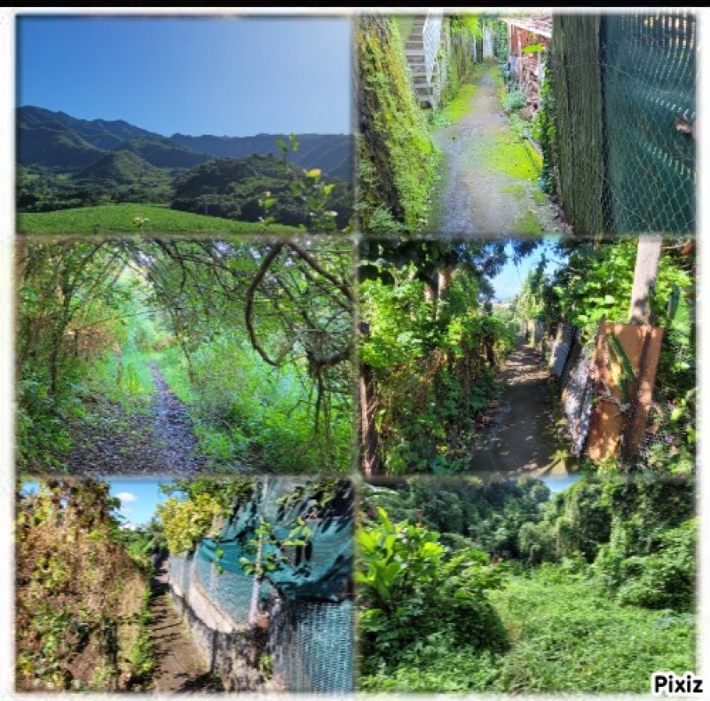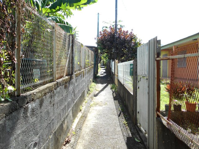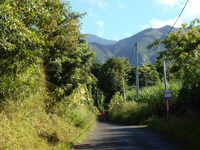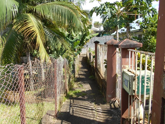 Sur une idée de Ludovic (connu pour ses comptes-rendus de randonnées sous le pseudo de orando974 : Voir son site et cette sortie), voici une randonnée originale pour toute la famille afin de connaître ce village du Gol les Hauts dans les hauts de la Rivière dont on empruntera quelques rues. C'est l'occasion de marcher à l'ombre dans d'étroites ruelles dépassant rarement le mètre de largeur et qui sont souvent le seul moyen de regagner sa case. Les boîtes aux lettres, et la factrice croisée ce jour là, montrent bien qu'il n'y a pas d'autre issue. Elle est obligée, en fin de ruelle, d'effectuer des manœuvres compliquées avec sa lourde moto afin de poursuivre sa distribution. On se demande également comment feraient les pompiers en cas d'incendie. En regardant la carte, on remarque bien d'autres ruelles qui pourront faire l'objet de quelques détours lors de cette boucle ou pour une autre sortie dans cette région urbaine. On rencontre tout au long du parcours toutes sortes d'habitations : de la villa chic à la case créole en passant par des masures très pauvres. Des portails électriques avec caméras font face à d'autres portails constitués d'une grille d'armature de plancher en fer à béton rouillé. D'énormes tas d'ordures, semble-t-il pérennes, décorent certaines rues alors que, près de là, des jardins pourraient figurer sur des revues spécialisées dans l'habitat pour y glaner des idées d'agencement paysager. On rencontre également des fruits ou plantes qu'on a peu ou pas l'habitude de voir lors des randonnées. Bien évidemment, le trajet emprunte des routes où la circulation peut être dense ou des rues de la Rivière bordées de magasins pouvant servir de point de repère. Une autre manière de marcher sans utiliser des sentiers. Comme le trajet est très difficile à décrire, le mieux consistera à imprimer l'itinéraire proposé ou de télécharger la trace et l'intégrer au GPS pour plus de sérénité.