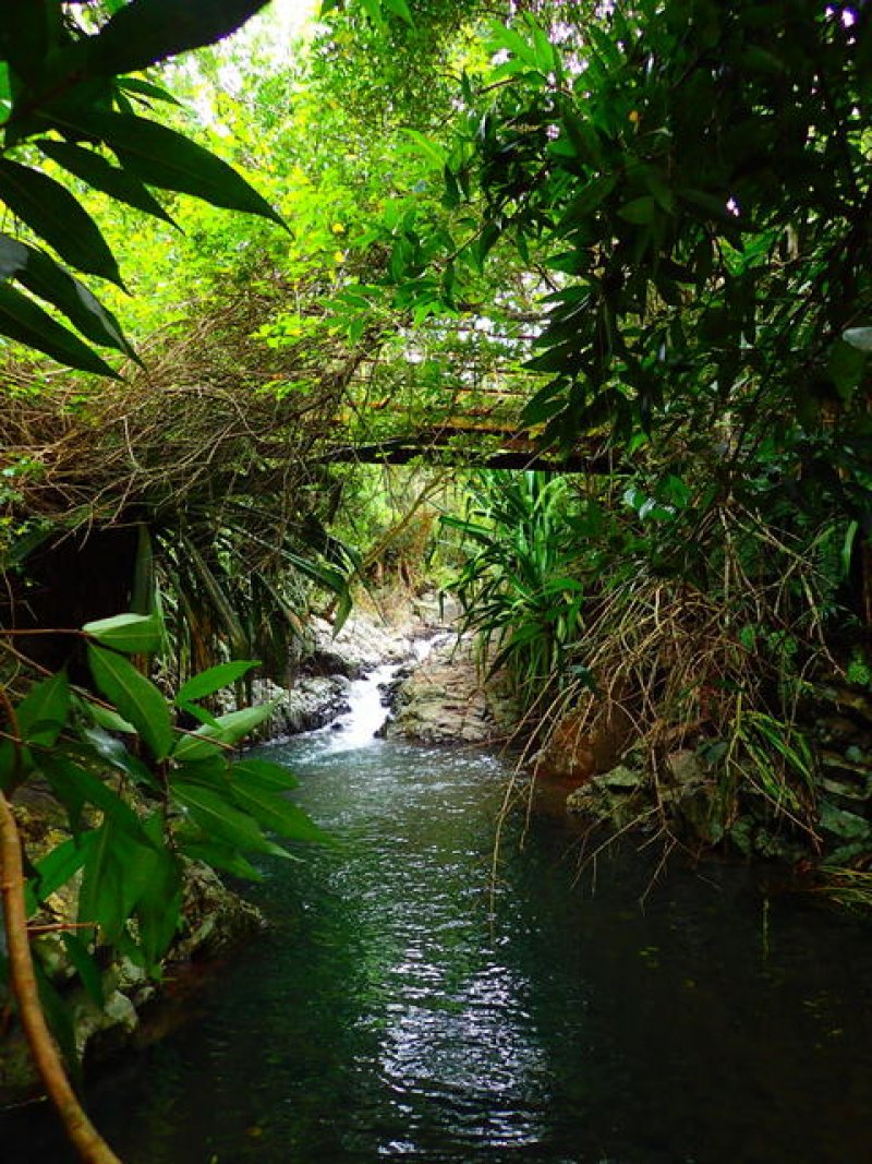 L'aire de pique-nique près du bassin de la Ravine Richard était bien nettoyée malgré quelques déchets laissés par des makotes. Une équipe d'entretien était d'ailleurs à l'oeuvre lorsque je suis passé. Le bassin de la Ravine Richard et les deux bassins de la Ravine des Merles étaient en eau mais sans leurs petites chutes. Le pont de Majeanette n'était pas très engageant à première vue, mais il est solide et j'ai pu passer sans encombres.