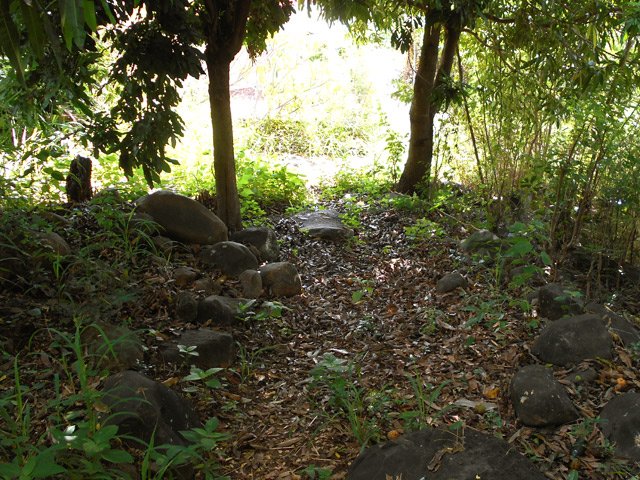 Ces rebus masquaient le début du très court sentier; ensuite on se baisse un peu pour éviter les branches mais la trace est bien là.....on frôle des bambous.et on poursuit...