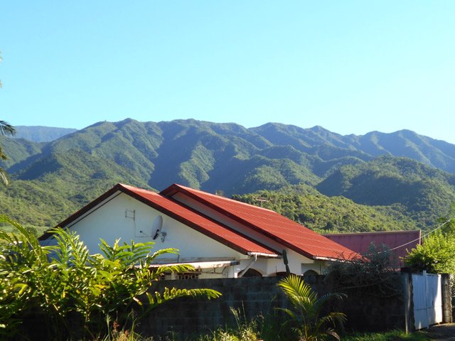 A noter : le rond de coq (gallodrome) entre le réservoir du Gol et le terrain de foot, en pleine activité lors de notre passage, encore un aspect typique de l'île.