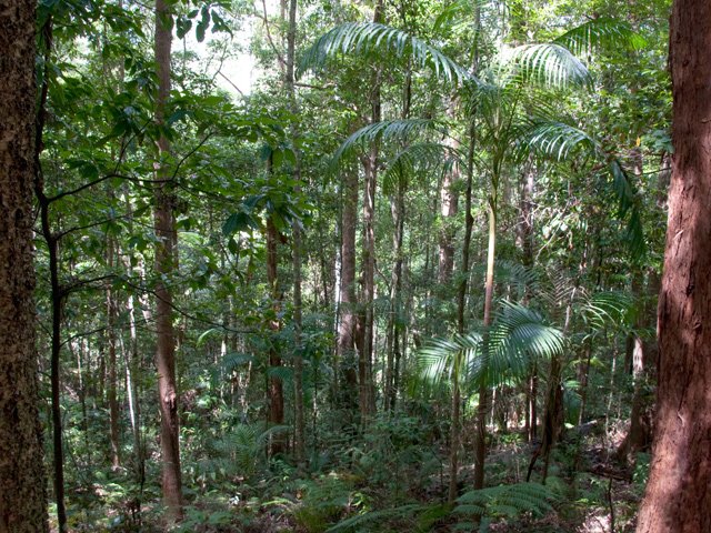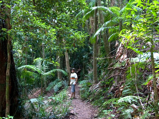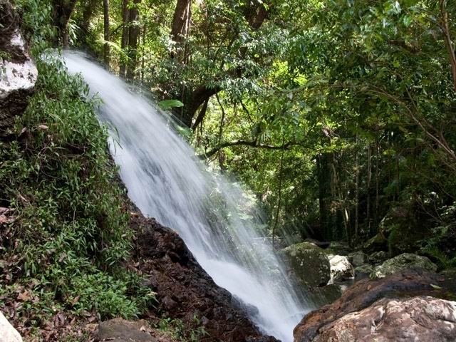 L'arrière pays de la Sunshine Coast comporte de beaux parcs nationaux dont le Mapleton Falls National Park et le Kondilla National Park où l'on peut admirer de belles cascades. C'est une région montagneuse recouverte de superbes forêts humides où il fait chaud mais qui procurent de l'ombre et des bassins d'eau fraîche pour se baigner en milieu de parcours. On y rencontre toutes sortes d'animaux dont un grand varan noir se déplaçant calmement et qu'on surprend parfois grimpant agilement dans un arbre à la recherche de nourriture. La forêt regorge d'oiseaux et l'on peut apercevoir des serpents dans les fourrés.