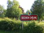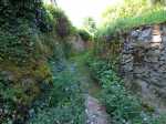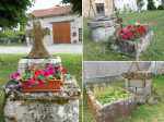 La randonnée débute au village de Saint-Yrieix sous Aixe qui est une des plus petites communes de la Haute Vienne. Elle compte moins de 450 habitants mais elle en a abrité beaucoup plus au cours de l'histoire avec un record de 608 âmes en 1881. Comme ce village était cité chaque année parmi les lauréats des villages fleuris de France, il reste partout, dans les jardins et autour des habitations, des centaines de fleurs ou plantes qui le colorent du printemps jusqu'à la fin des chaleurs. Si on ne se promène pas dans ce village avant de démarrer les deux boucles, il ne faut pas partir sans avoir arpenté ses courtes rues. Il est possible de stationner au plus près de l'église (Photo 1). On démarre tranquillement vers le cimetière et on descend le long de la route pour prendre la première bifurcation à droite. On se retrouve face à un étang qu'on contourne pour prendre la direction du superbe hameau de la Roche (Photo 2). On aperçoit, de l'autre côté de la vienne, l'immense carrière d'extraction de pierre de Pagnac (Photo 3). Contourner le petit village par le nord et prendre un adorable sentier creusé et bordé de grandes haies de noisetiers et de chênes qui se termine à des murailles moussues bordées de lierre (Photo 4). On a l'impression de marcher dans une étroite douve herbeuse envahie d'une espèce de pélargonium sauvage (Photo 5). Une pancarte discrète indique la fontaine qui se rejoint en une minute. Elle mériterait un bon nettoyage et une mise en valeur derrière sa grille (Photo 6). Là également, ne pas poursuivre sans une visite dans les rues pour profiter du calme, des vieilles pierres, des treilles de vigne et des fleurs partout (Photo 7) ou de ce beau portail sculpté bordé de deux portes au style roman (Photo 8). Pas de difficulté pour rejoindre la route puis le bord de Vienne mais la rivière est difficile à atteindre. Un sentier part sur la droite et remonte légèrement. Ne pas manquer sur la droite un immense chêne à 30 mètres du sentier sur la droite (Photo 9). Trouver la piste qui passe entre les étangs est facile et on s'engage aussitôt dans un large chemin traversant un bois de chênes (Photo 10). Flâner à la saison car les cèpes poussent parfois au plus près du chemin dans la mousse sous les arbres. Pas de difficultés pour suivre le chemin entre prairies et champs et prendre la direction du Château du Mas Marvent (Photo 11). On passe tout d'abord près du club hippique repéré à son panneau indiquant des passages possibles de cavaliers (Photo 12). On aperçoit même quelques chevaux et poneys s'abritant du soleil sous les chênes (Photo 13). Poursuivre et frôler le grand panneau "Dechen Chöling" (Photo 14). Le château est occupé par un centre de méditation, de yoga et de bouddhisme. Le chien n'a pas suivi tous les cours et un bâton à la main peut s'avérer fort utile. De même, on croise dans les chemins alentour des gens qui regardent les champs et répondent à peine à un salut pour ne pas interrompre la contemplation d'un champ de blé ou un grand arbre (Photo 15). On bifurque à gauche pour suivre une très longue et agréable piste herbeuse bordée de prairies, chênes, fleurs de toutes couleurs (Photo 16). C'est l'heure de la halte pour une contemplation individuelle ! On parvient, après une centaine de mètres d'ascension depuis les étangs, au hameau de Ratterie. L'endroit respire le calme et la sérénité. Des puits en pierre ou des bacs creusés dans le granite accueillent des fleurs de toutes les couleurs (Photo 17). La petite boucle qui s'éloigne de Ratterie pour y retourner très vite peut paraître curieuse sur la carte mais il ne faut pas, là non plus, l'éviter car le sentier est très agréable. Il est bordé de houx et la marche s'effectue sur l'herbe (Photo 18). Il revient dans Ratterie entre une clôture et une murette (Photo 19). Poursuivre en sous-bois vers Chez Pouzy en suivant les balises jaunes (Photo 21). Le retour à Erin emploie quelques tronçons de petite route étroite. Le retour vers Saint-Yrieix s'effectue au début sur de beaux chemins entre chênes et prairies (Photo 22) ou en sous-bois ombragés sur une pente très faible (Photo 23). Après une longue boucle, le parcours emploie un peu de l'agréable route passant par la Graulière (Photo 24). Les granges ont souvent la même forme dans une grande partie du Limousin. Le bâtiment principal comporte un très grand portail pour laisser passer les remorques de foin ou de paille et une à deux étables latérales accueillaient les bovins (Photo 25). Il est très rare désormais d'y rencontrer un élevage. On retrouve de nouvelles prairies plus ou moins étendues (Photo 26) et les inévitables troupeaux de limousines cherchant de l'ombre (Photo 27). Prendre à droite avant les maisons du Bos Lagarde et reprendre le chemin arpenté en montant à travers champs et cultures (Photo 28). Passer entre deux étangs et bifurquer à gauche pour suivre le chemin qui longe d'autres étendues d'eau. On retrouve le premier étang contourné en début de boucle et le retour au village ne prend que 5 minutes.