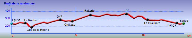 Voici une autre randonnée présentée sur l'excellent site de randonnée en Limousin du Conseil Général de la Haute Vienne et dont une partie de la boucle ne passe qu'à 2 km du hameau qui m'a vu naître. En plus de la campagne habituelle de cette partie du Limousin consacrée à l'élevage et à la polyculture, on peut visiter un petit bourg qui a longtemps remporté tous les concours des villages fleuris, une source originale très fraîche, le magnifique village de la Roche, les bords de la Vienne, de vieilles pierres dont quelques puits en très bon état et bien sûr des étangs partout. Ce sont en réalité deux boucles reliées par un chemin commun et le sens de parcours importe peu. Les quelques portions de goudron sont courtes et toujours agréables. De plus, la circulation n'y est pas très importante.
