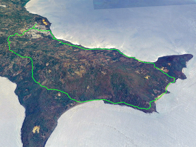 Le Mlima Saziley ne fait que 233 m de haut. Plusieurs sentiers le parcourent et permettent de rejoindre les nombreuses plages de la presqu'île. Cette terre en forme de botte est principalement connue des tortues qui viennent y pondre depuis des millénaires. Les sentiers sont d'ailleurs balisés par des tortues peintes au pochoir. Une couleur par itinéraire avec possibilité de combiner plusieurs d'entre eux. On ne voit que quelques "balises tortues" sur cette boucle qui utilise surtout le GR et on bénéficie de moins de panoramas sur le lagon que par le sentier des crêtes. Même si le circuit est court, il faut absolument prévoir de la boisson car la chaleur est toujours forte. Effectuée tôt le matin, cette boucle permet de voir de multiples traces de tortues reparties vers la mer lors de la traversée de la demi-douzaine de plages bordées de baobabs. Pour assister à la ponte, on peut employer un autre itinéraire plus court et surtout rester tard le soir ou venir le matin avant le lever du soleil.