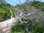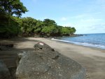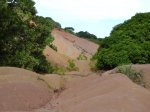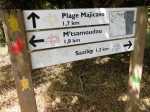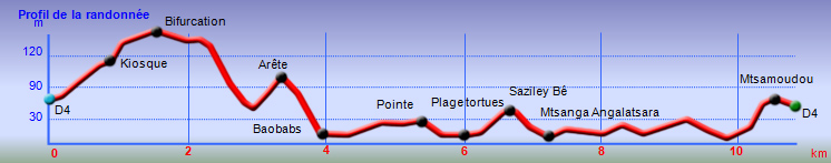 La boucle débute au village de Mtsamoudou et emprunte la route en direction de Dapani. Attention à la circulation durant ce court transfert en montée sur le goudron. Remonter jusqu'au Col de Saziley et bifurquer à gauche sur une piste qui débute près d'un faré. Une pancarte pédagogique présente la région en quelques textes et photos (Photo 1). Plus loin, une autre explique les différents circuits balisés de tortues stylisées de quatre couleurs. On retrouvera un peu partout de ces pancartes décorées de petites tortues colorées (Photo 2). Débuter par le circuit vert et marcher sur le haut de la crête assez peu recouverte de végétation sur un large sentier presque plat (Photo 3). Les vues sont nombreuses sur la baie et le village de Dapani (Photo 1). Très vite, on rencontre un premier croisement vers la droite. Prendre ce sentier qui descend et rejoint le GR venant de Dapani (Photo 5). On marche à plat dans quelques cultures rabougries puis on entame une longue descente dans beaucoup de végétation avec les mêmes panoramas (Photo 6). Guetter les oiseaux, pas toujours faciles à voir, dans les branches mais qui se manifestent par leur chant. Les makis, moins discrets, s'aperçoivent plus facilement. Les grosses araignées ont bâti leur toile et ce n'est pas toujours agréable de passer le premier. Quelques reptiles se chauffant au soleil filent à l'arrivée des marcheurs. On remonte pour passer la crête Rassi Maoussi puis le sentier redescend vers la mer par quelques portions caillouteuses (Photo 8). Dans l'ensemble, le trajet du GR en sous-bois est agréable et à la portée de tous (Photo 9). Quelques bananiers ou manguiers procurent de l'ombre mais ce sont surtout les lantanas qui bordent le parcours qui commence sa dernière descente vers la mer. Les premiers baobabs font leur apparition sur le bord du sentier (Photo 12). Il se termine à la case de l'observatoire des tortues. Des farés installés à l'ombre des énormes baobabs permettent de se reposer de cette descente facile (Photo 13). La portion la moins agréable de la boucle prend fin ici. On passe au plus près de la case où une pancarte demande aux parents de surveiller leurs enfants qui pourraient pénétrer dans les cages-pièges à chiens (Photo 14). Le nombre de tortues venant pondre et les kyrielles de petits sortant de l'œuf pour rejoindre la mer justifient amplement cette capture de chiens errants. Plus difficile de prendre la main dans le sac les braconniers qui viennent piller les lieux de ponte, d'où l'intérêt d'y séjourner une nuit pour les dissuader durant quelques heures. Les plages elles-mêmes valent la peine de marcher dans le sable à la recherche de natures mortes (Photo 16), de gros baobabs (Photo 17) ou de curiosités (Photo 18). Des baobabs situés trop près de la plage peuvent même tomber au sol si des tortues viennent creuser en nombre pour pondre sous leurs racines (Photo 19). Commence alors une longue balade presque à plat sur les plages ou un sentier qui borde la mer sans jamais trop s'en éloigner. On arrête très vite de compter les traces de tortues, très nombreuses chaque matin avant que la marée ne les détruise (Photo 20). Les lieux de ponte sont saccagés par les pontes les plus récentes et les corneilles tournent sans arrêt pour se régaler des œufs écrasés. Si on ne campe pas dans le coin pour assister à une ponte nocturne, poursuivre sur les plages par le GR qui emprunte de longues portions de sable gris (Photo 24). De baobabs en plages de sable fin, on parvient, une heure plus tard à la bifurcation vers M'tsamoudou. Le sentier est caillouteux et le restera jusqu'au village. On peut tenter l'escalade de 100 m sur le Saziley Bé par un étroit sentier qui débute dans une belle zone de terres dénudées, les badzas (Photo 26). Après ces terres friables, le sentier serpente et effectue quelques dents de scie pour alterner les sous-bois, les "forêts" de baobabs ou les courtes traversées de plages. Voir cette randonnée pour d'autres détails et images de cette jonction agréable entre les énormes troncs de baobabs et balades sur la plage. On arrive par une dernière descente au terrain de sport de Mtsamoudou (Photo 27) d'où l'on a de belles vues sur le Saziley Bé (Photo 28). Il ne reste plus qu'à flâner dans ce village côtier parmi les poules et chèvres se baladant sur la plage avant de rejoindre le véhicule.
