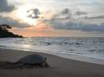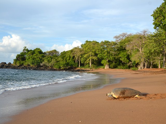 Cette page est la suite de la randonnée débutée la veille depuis le Mont Choungui, à moins de dormir sur place en venant de Mtsamoudou. Après avoir passé une partie de la nuit à guetter les tortues venues pondre sur la plage, il faut songer à reprendre le sac à dos et rejoindre un autre point de l'île. Le plus rapide est de rejoindre Mtsamoudou en longeant les plages bordées de monstrueux baobabs qui n'ont pas grand chose à envier à ceux rencontrés au Sénégal ou à Madagascar. L'heure de début de la randonnée est en général dicté par le départ en pleine mer de la dernière tortue venue pondre dans le sable fin près ou sous les racines de baobabs. Ce spectacle extraordinaire se respecte. Les tortues attendent la nuit et refusent de monter sur la plage si elles y voient trop de monde attendant la lampe allumée à la main. Pour que le souvenir soit inoubliable mais surtout que les principales intéressées puissent accomplir leur difficile mission, il faut rester discret, ne pas utiliser de lumière, encore moins de flash excepté lorsque l'animal est de dos. Il faut respecter le plus grand silence et seul le bruit des vagues doit troubler la ponte. Ne jamais chercher, comme le font trop souvent des visiteurs, à toucher l'animal qui souffre déjà beaucoup de ramper sur le sable.