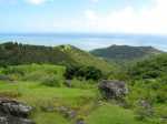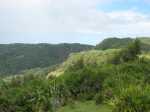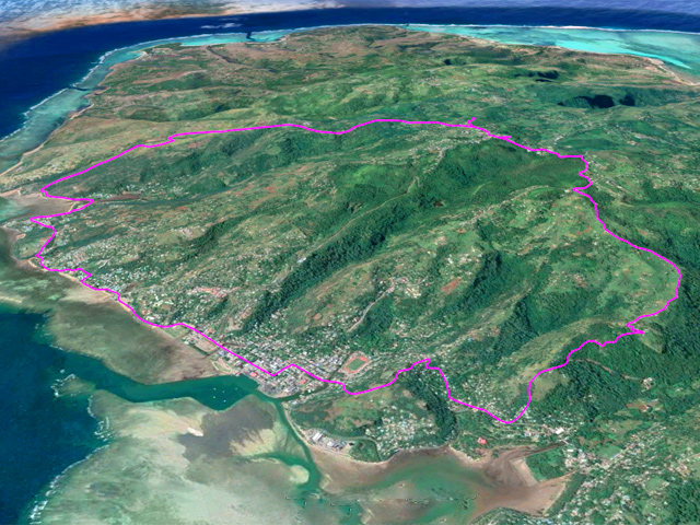 La randonnée débute à Port Maturin qu'on retrouvera après ces 13 km de boucle. On peut débuter par un tour au marché et flâner dans les rues pour y dégoter des magasins pays (Photo 1) , de belles cases dans un habitat en général modeste (Photo 2) ou des boutiques plus caractéristiques (Photo 5). Marcher vers l'Anse aux Caves en restant toujours au plus près de la mer. Cela évite la circulation même si elle est faible et permet d'être au plus près des flots pour y repérer des étendoirs à poulpes en train de sécher, des pêcheurs qui nettoient leurs prises ou simplement avoir un plus large panorama sur le lagon (Photo 5). Contourner l'Anse aux Caves puis franchir le pont sur la Ravine Sygangue, une zone ensablée et inondable à marée haute. 400 mètres après le pont, emprunter une piste qui remonte en direction des sommets qu'on aperçoit déjà à l'horizon (Photo 6). Emprunter ensuite un sentier passant dans un bois d'eucalyptus (Photo 7). Le sentier monte lentement mais sûrement au Mont Goyave puis au Mont Borne en traversant quelques zones plus arides (Photo 8). On atteint assez facilement les points hauts au milieu de petites prairies où les bovins profitent sans le savoir de beaux points de vue sur le lagon (Photo 9). Des roches un peu partout permettent de se hausser un peu pour mieux profiter de ces panoramas ou étudier le parcours déjà effectué (Photo 10). Des prairies plus importantes occupent également le haut des collines (Photo 11). Emprunter la route qui permet de rejoindre rapidement le Mont Lubin, facile à trouver à partir du village éponyme. Il est aussi possible de partir un peu vers la gauche avant le village et remonter vers le Mont Limon pour de nouveaux panoramas (Photo 14). Faire demi-tour, traverser le village et entreprendre la montée rapide au Mont Lubin (Photo 16). Son escalade est aisée et les panoramas qu'il offre sont splendides et permettent de mieux connaître la petite île et son habitat dispersé (Photo 17). Depuis le Mont Lubin, il y a plusieurs possibilités pour rejoindre la capitale. Celle proposée ci-dessous permet de rejoindre la Baie aux Huitres sur un chemin sinueux entre des cultures à étages et des zones boisées qui ne sont pas encore défrichées. Poursuivre en empruntant l'agréable route des Soupirs. Le réseau routier est sommaire mais suffisant pour la faible circulation hors heures de pointe (Photo 20). La descente en pente très douce permet de profiter des paysages de prairies (Photo 21) ou des zones plus boisées et habitées (Photo 22). On ne se lasse pas de la route grâce à ces paysages ou des rencontre originales d'habitants ou d'animaux attachés à leur arbre (Photo 24 et 25). La Baie aux Huitres sert ensuite de repère pour la dernière descente (Photo 27). Quitter la route principale, marcher vers quelques habitations et poursuivre sur un sentier en pente assez forte jusqu'à la route principale de la Baie Aux Huitres (Photo 28). La fin de la boucle emploie des rues ou quelques raccourcis repérés sur la carte.