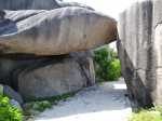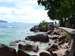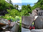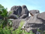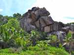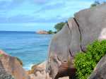 La randonnée débute au port, à la sortie du Ferry, après avoir traversé la mer entre Praslin et la Digue dans de belles eaux turquoise où les pêcheurs s'affairent (Photo 1). Prendre à droite dans le village et longer la mer ou se balader dans la petite ville pour en apprécier l'ambiance insulaire (Photo 2). Poursuivre jusqu'à l'entrée payante du Domaine de l'Union où de nombreuses activités ou visites sont possibles (Photo 3). Flâner dans la propriété pour y découvrir tout ce qui y est présenté puis prendre le chemin qui file plein sud en direction de l'Anse Source d'Argent. C'est tout d'abord un large sentier totalement plat qui passe entre les arbres, les cocotiers et les premiers gros rochers (Photo 4 et 5). Beaucoup de ces gros rochers ont des formes caractéristiques qui peuvent amuser grands et petits (Photo 6). On parvient sans effort à l'Anse Source d'Argent mais non sans avoir déjà subi les assauts du soleil, très chaud dans ces régions équatoriales (Photo 7). La majorité des photos classiques vues dans le monde entier pour vanter les Seychelles sont prises sur cette île et l'appareil photo reste rarement enfermé dans le sac à dos (Photo 8). Les roches alternent avec le sable, la verdure se marie bien avec le jaune du sable et le turquoise de l'eau (Photo 9). Certaines roches sont si importantes en taille que le sentier passe dessous en créant de l'ombre assez chaude (Photo 10). D'autres, dans les mêmes positions sur la plage, créent des espaces ludiques pour les enfants (Photo 11). Quand le sentier a du mal à passer à l'arrière des roches, ne pas hésiter à marcher sur les plages, quitte à mouiller un peu les pieds (Photo 14). De criques en petites plages on parvient assez facilement au sud de l'île. Quelques passages dans la végétation et l'étroitesse du sentier peuvent ralentir mais on parvient aux grosses roches bordant Grande Anse, un autre lieu de carte postale (Photo 16). Plus loin, il est possible de rentrer au port par la petite route souvent ombragée se dirigeant vers la ville. Le sentier s'éloigne un peu des plages pour se diriger vers l'Anse Cocos. Il traverse donc un peu plus de végétation qu'en bord de mer mais se suit aisément (Photo 17). La longue plage de l'Anse Cocos, également bordée de ces classiques roches, est toujours aussi agréable (Photo 18). Il faut ensuite monter d'une trentaine de mètres pour traverser le cap situé à l'est. C'en est fini des longues et larges plages calmes. Les vagues commencent à battre la côte et faire quelques éclaboussures (Photo 19). Le sentier n'est pas toujours facile à trouver, surtout lorsqu'il passe sur les rochers, mais de belles traces de peinture rassurent. Il faut parfois quelques acrobaties pour passer mais la balade, quoique sportive, est amusante (Photo 20). Pas question de marcher dans l'eau qui peut être assez haute par endroits (Photo 21). Pourtant, quelques minuscules criques abritent un peu de sable pour les marcheurs fatigués voulant s'étendre un peu avant de poursuivre (Photo 22). Un peu après l'Anse Ermetz, les difficultés prennent fin et on rencontrera désormais plus de cyclistes que de marcheurs sur une petite route littorale étroite et agréable (Photo 23). Même les allergiques profonds au goudron ou au béton ne se lasseront pas de l'arpenter. Elle passe au plus près des vagues où l'on retrouve les éternels rochers (Photo 24). La mer turquoise donne à tout instant l'envie de se baigner, surtout que la chaleur accumulée depuis plusieurs heures commence à fatiguer (Photo 25). On profite, malgré cette route, de nouveaux magnifiques paysages de rêve à gagner des concours s'ils n'étaient pas aussi fréquentés (Photo 26). Arrivée plein nord, la route attaque son retour vers la "capitale" en offrant de plus en plus de panoramas sur Praslin (Photo 27). La fin, plus urbanisée, s'effectue à l'envie en fonction de l'heure en longeant la côte ou en visitant la ville.