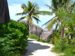 La petite île de La Digue compte parmi les endroits les plus photographiés surtout pour ses sublimes plages de sable blanc bordées de rochers de granite érodé. Tous les clichés y sont réunis, du lagon turquoise au cocotier qui penche sur la mer sans parler de certains couchers de soleil. Située à 15 minutes de bateau de Praslin, elle incite beaucoup plus à la baignade qu'à la randonnée. C'est d'ailleurs à bicyclette ou en camion que la plupart des touristes la parcourent sans grands efforts. Mais, en raison de la très petite taille de l'île, il est possible de la visiter à pied ce qui permet de mieux voir les beaux paysages et de pouvoir discuter en passant au plus près des cases. Le ferry arrive au port et la randonnée peut débuter dès la descente du bateau. On visitera tout d'abord les grands classiques en se rendant au Domaine de l'Union. On pourra y voir, entre autres, un pauvre bœuf qui tourne autour d'un broyeur à coco pour le plaisir du touriste, la case bien délabrée où a été tourné le film "Emmanuelle" ou la grandiose plage et pointe de la Source d'Argent. Tout le reste du parcours permettra de traverser par la route étroite des zones de culture, d'élevage, boisées ou en bordure de lagon. La route finit d'un côté à Grande Anse et de l'autre à l'Anse Fourmis ; un sentier rejoint ces deux extrémités. La partie Sud est assez facile mais celle à l'Est, menant de l'Anse Coco à l'Anse Fourmis est beaucoup plus sportive par moments.