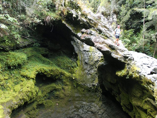 Au retour, au deuxième passage de ravine avec tuyau, emprunter le sentier qui rejoint la Grande Ravine pour admirer l'arche naturelle avant de repartir par le sentier de Grand Galet.