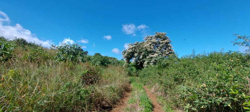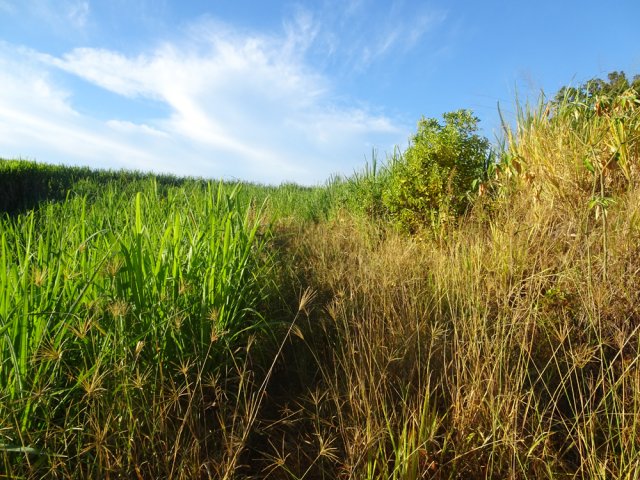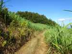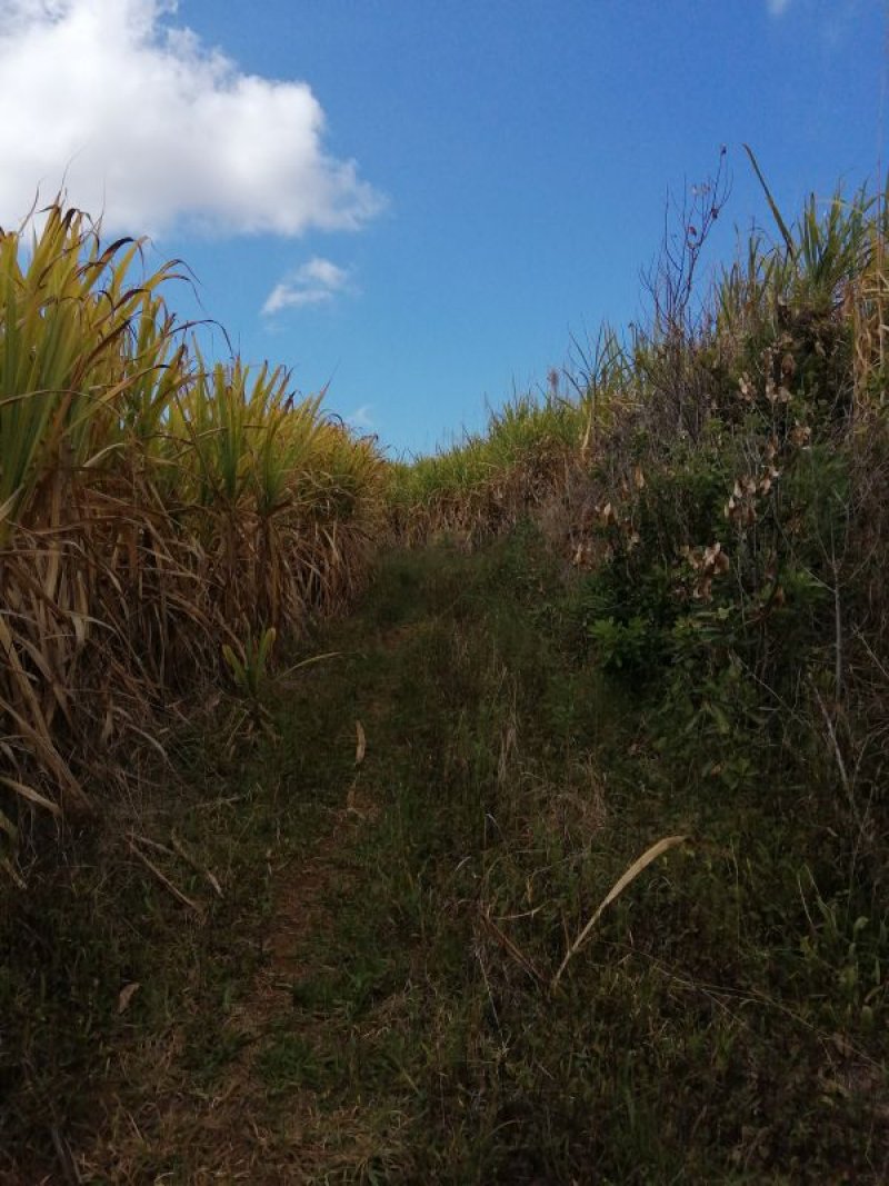 Le sentier de la Forêt de la Ligne d'Equerre a été délaissé et ne mérite plus de voyage particulier pour l'effectuer. Celui du Piton Nathalie, en revanche, est toujours en bon état et pratiqué régulièrement par les vététistes. Bérive et le petit village de la Ligne d'Equerre se relient facilement en traversant de longues étendues de canne, de prairies et de champs d'ananas en profitant de splendides points de vue sur les montagnes ou l'océan. La boucle proposée emprunte les sentiers du Piton Nathalie, les pistes plus ou moins marquées dans les cannes à sucre et quelques portions inévitables de route. Testée une première fois pour prendre ses repères, cette boucle peut très vite devenir un terrain d'entraînement ou de footing pour les sportifs de la région. Afin d'éviter de longues descriptions des pistes successives, il est fortement conseillé de télécharger la trace. Il est assez fréquent que des pistes disparaissent sous le soc de la charrue mais il y en a toujours une dans les parages pour retrouver la trace. Quelques hectomètres de route goudronnée sont inévitables mais ces tronçons sont agréables, étroits, avec peu de circulation et offrent toujours de beaux panoramas.