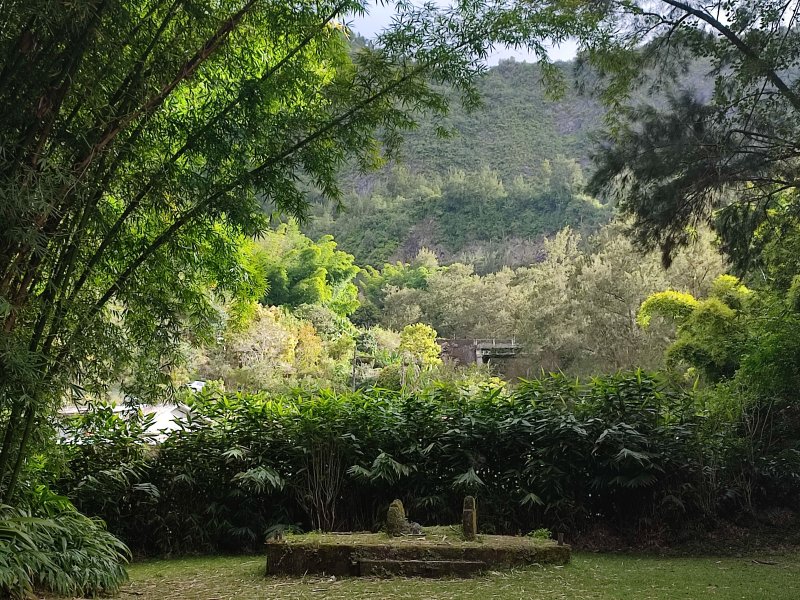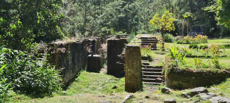 La randonnée débute sur la route de Salazie, en face du Relais des Gouverneurs où un grand parking permet de stationner sans problème. Suivre la route en direction de l'Îlet à Vidot qu'il est impossible à manquer tellement il y a de pancartes. La route traverse le Bras d'Amales entouré de chouchous avant de passer près de la rue qui remonte aux Trois Cascades. Longer ensuite cette même route en direction du Bras Sec. La circulation est faible mais il vaut mieux marcher sur les accotements herbeux. Profiter des magnifiques panoramas sur la droite vers le Cimendef (Photo 2) ou à gauche vers le Gros Morne (Photo 4). Après le Bras Sec, descendre un peu et repérer sur la droite le panneau indiquant les thermes. Cette voie est en général empruntée lorsqu'on revient de marcher au Piton d'Anchain si on est parti de Hell Bourg. On débute sur une piste caillouteuse qui rejoint une esplanade herbeuse (Photo 5) avant de bifurquer à gauche sur le sentier étroit qui rejoint les ruines des thermes qu'on aperçoit déjà à travers les arbres. La descente n'est pas très difficile sur ce sentier étroit (Photo 7). On arrive au Bras Sec pour le traverser à gué. Très peu d'eau coule dans cette ravine caillouteuse et la traversée s'effectue sans encombre. Sur la droite, les vestiges d'une très ancienne passerelle rouillée sont pris dans la végétation. Plus à gauche, les ruines des Anciens Thermes se visitent rapidement car il reste très peu de vestiges intéressants (Photo 10). L'architecture elle-même semble très ordinaire. La boucle est pratiquement terminée. Il reste à remonter vers la ville par une série d'escaliers de très bonne qualité avec des petits marches accessibles à tous (Photo 13). Les alentours sont très bien aménagés par des emplois jeunes. On parvient à des bâtiments qui semblent abandonnés ou qui servent peu avant d'atteindre un petit pont sur le Bras d'Amales (Photo 17). Les chouchous sont encore plus couvrants que plus haut en début de boucle. La gendarmerie est toute proche et jouit d'un cadre enchanteur. Poursuivre sur la route et atteindre la bibliothèque municipale (Photo 19) en face d'un guetali (Photo 20). Prendre une dernière fois à droite et retrouver le véhicule une centaine de mètres plus haut.