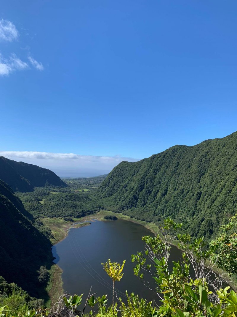 Le point de vue sur l'usine de Takamaka par la montée à la Fenêtre de Grand Etang