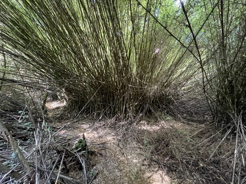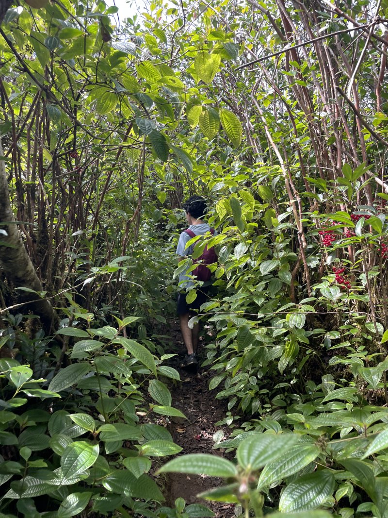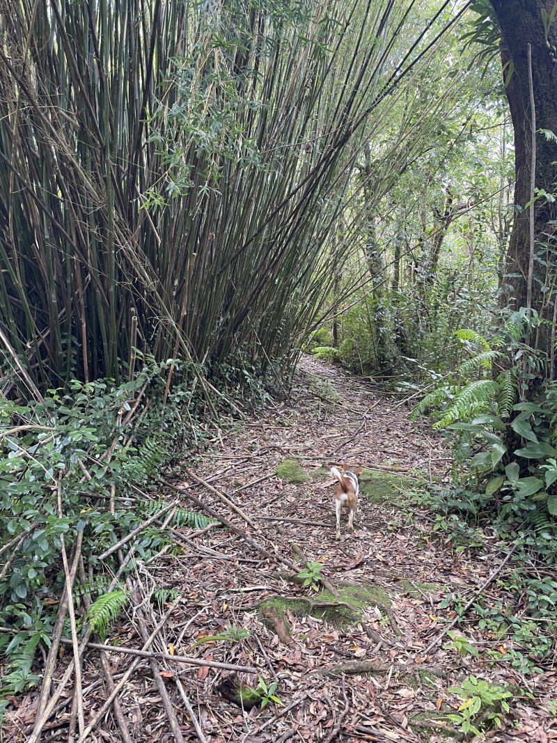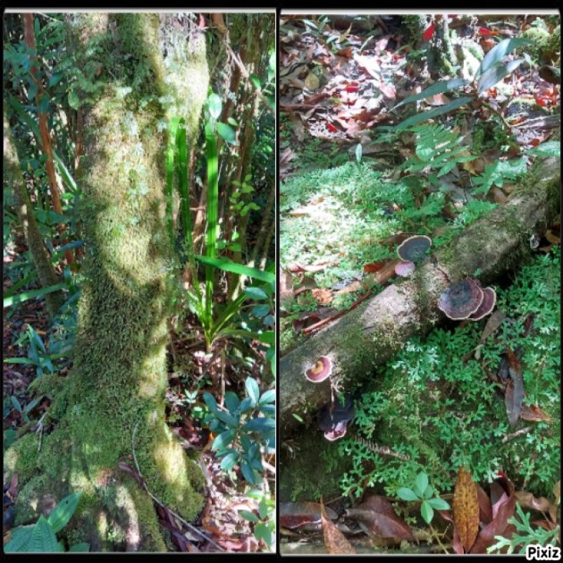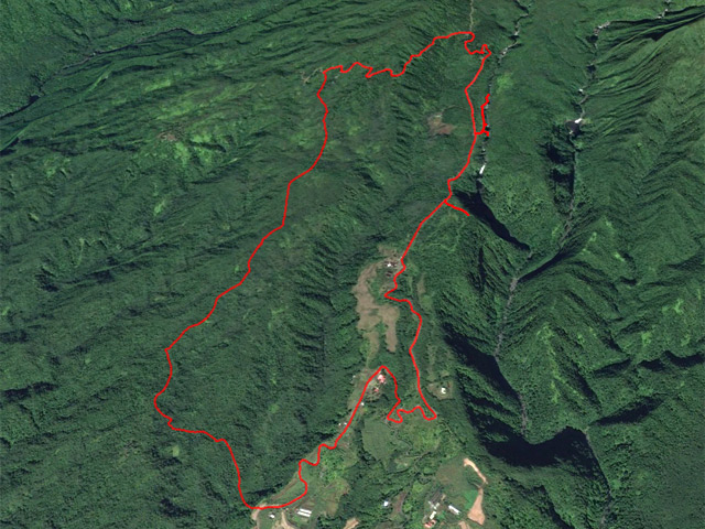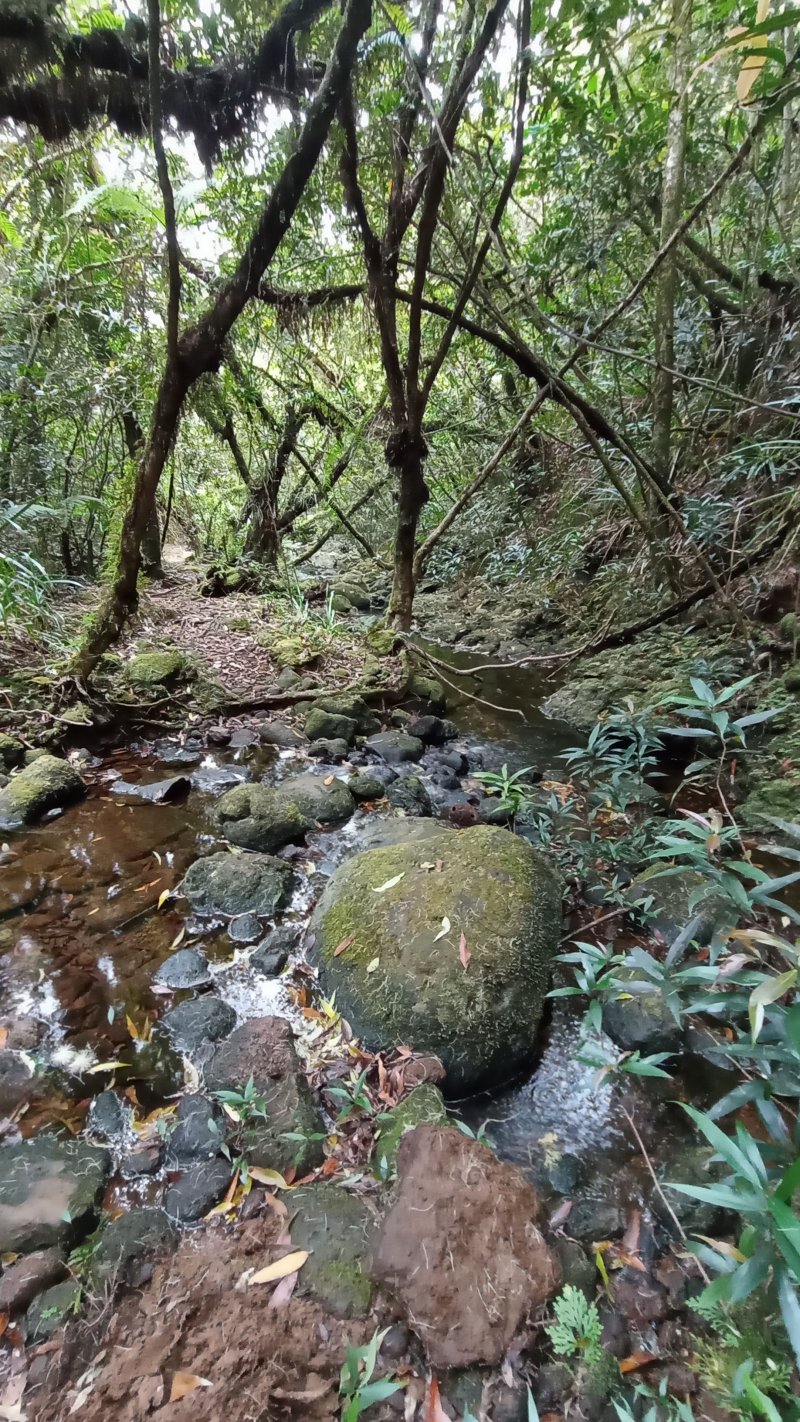 La météo, peu clémente pour cette boucle, en a diminué grandement les qualités. Situé entre la Cascade du Chien et l'Eden, l'itinéraire traverse une partie de la magnifique région couverte de végétation verdoyante du nord de la Forêt des Lianes. Les sentiers boueux une bonne partie de l'année indiquent qu'il est difficile de prévoir un circuit les jours de soleil généreux. La boucle emprunte tour à tour la route, puis la piste avant de se terminer par le sentier de la Caroline et celui moins connu de Terre Rouge. Quelques écarts minimes sont proposés pour s'approcher de bassins mais n'ont rien d'obligatoire puisque situés en marge de la boucle. Les goyaviers dominent très largement les autres espèces. Ils poussent par endroits tellement serrés qu'il est impossible de quitter le sentier. Attention ; le sentier Terre Rouge n'est pas exactement à la place indiquée par la carte IGN mais la petite pancarte plantée assez près de son début ôte tout doute. Par beau temps, on profite de quelques panoramas sur l'océan et la côte vers Bras Panon et Saint-André ou vers les mornes et pics du Bras des Lianes. Il est également intéressant de débuter la boucle aux premiers kiosques vers l'Eden afin de profiter de leurs tables en fin de boucle si c'est l'heure du casse-croûte.