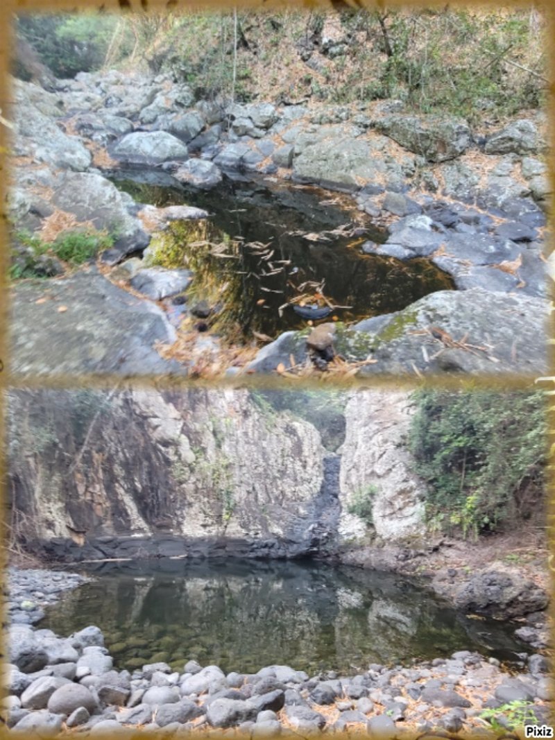 Selon 2 personnes du coin l endroit s appelle Bassin 3 chambres (à cause des petites grottes). Et bassin 2 sœurs selon d autres personnes, se situerait bien en aval après le petit pont donc de l autre côté de la route. Je suis allé dans ce bassin(pas simple ) et l histoire/ la légende du nom viendrait de deux sœurs qui seraient venues pour laver du linge et une aurait été emportée puis l autre aurait essayé de la sauver et aurait subit le même sort.