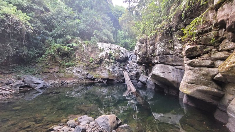 Puis on remonte agréablement la ravine, en trouvant d'abord le modeste Bassin Mangue, puis le beau Bassin Marie- Louise, et enfin on atteint la trace de Randopitons en commençant par le Bassin des Deux Soeurs.