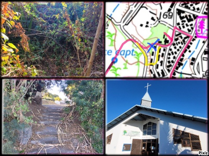 Photo 5 : vers la côte 69, le petit sentier menant à l'église est complètement encombré de pestes végétales et parfois jonché d'ordures ( en haut à gauche)