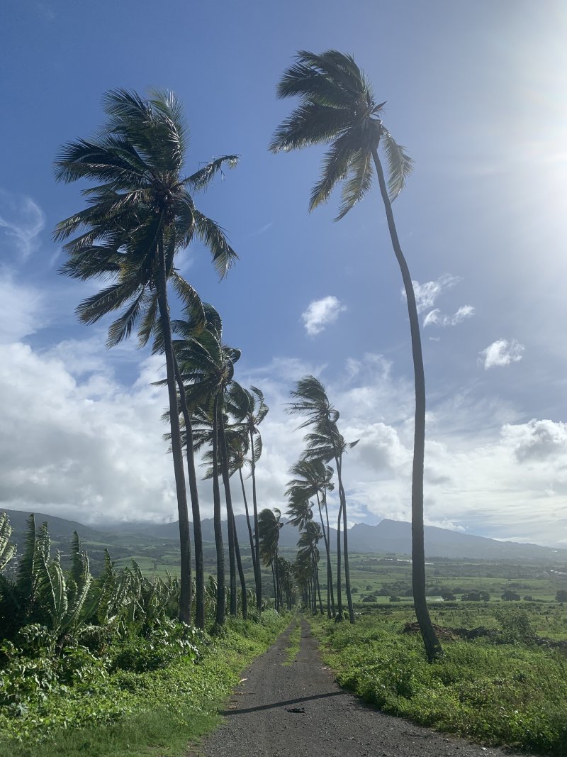 Je rejoins un peu Walking Dog 974 pour être re-tombé sous le charme de tous ces vestiges historiques que j'avais découvert naguère. Et aussi pour refaire l'allée de cocos très photogénique. En bonus l'odeur de la canne à sucre cuite qui vous poursuit pendant la boucle. Donc 2 cœurs ! Par contre ce jour difficultés à suivre la ravine du Gol à cause des gros orages de la veille ! J'ai du avec beaucoup de mal remonter 2 fois sur les hautes berges (végétation rebelle) et cette fois-ci impossible de m'approcher de la passerelle. Sans surprise tous les aménagements prévus- commentaire de Fanch du 4/02/2017 !!- qui permettraient de rendre tous ces sites plus attractifs sont encore dans les cartons...et peut-être pour toujours. Ils y resteront aussi longtemps que les dépôts d'ordures rencontrés! Temps bien respecté sous un soleil de plomb dès 6h du matin ! A mi-chemin de la longue allée de cocos, belle barrière et panneau "propriété privée, passage interdit" trés dissuasifs, sur lesquels vous buterez si vous faites la rando dans le sens contraire de la fiche.Pas de problème dans le sens de la fiche car aucun panneau !