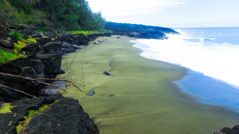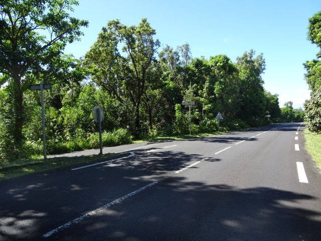 La randonnée débute à quelques pas du tunnel de Citron Galet au Tremblet. Un petit parking sous un manguier moussu permet le stationnement de 2 ou 3 véhicules. Il est hélas trop souvent fréquenté par des chiens abandonnés guettant les objets sortant du coffre d'un air triste. Quand on sait qu'on vient ici, le sandwich doit être préparé avec 10 cm de plus qu'à l'habitude. La route forestière du Vieux Port du Tremblet débute juste en face (Photo 1). Rejoindre le Vieux Port par la petite route est un pur plaisir car elle est à l'ombre des grands bois de couleurs, les oiseaux partent dans tous les sens et la pente est faible (Photo 2). Les fougères ont envahi les fossés et même les grands troncs où elles s'accrochent jusqu'à 7 ou 8 m de hauteur. On remarque quelques plantations de vanille à l'ombre des grands arbres. La route est étroite, la circulation minimaliste et la descente est une balade (Photo 3). Après quelques lacets, le bruit de la mer devient de plus en plus fort. Une pancarte de l'ONF indique le sentier littoral de Saint-Philippe qui débute ici et commence vers la droite. Partir sur la gauche et débuter la descente vers la nouvelle plage du Tremblet en passant devant un kiosque isolé (Photo 4). Le sentier comporte quelques hautes marches et un ou deux lacets. La descente est rapide jusqu'à la mer. Repérer, avant d'arriver au Quai de sel, un sentier de pêcheurs qui file sur la droite entre les filaos. On se retrouve sur un palier de la falaise sur lequel il est facile de marcher. On domine les vagues d'une petite dizaine de mètres et la balade est très facile et agréable. Après 300 m de cheminement on arrive à l'arche naturelle du Quai de Marie (Photo 5). L'endroit est magnifique, battu par les hautes vagues qui font apparaître et disparaître le tunnel sous le basalte. Attention à la chute pour tenter de s'en approcher. Les marches sont hautes ainsi que les vagues qui représentent un réel danger. En se retournant, on voit très bien la coulée de 2007, le Quai de Sel, l'arche et les filaos sous lesquels on a marché (Photo 6). Poursuivre plein sud sur un terrain plat et peu dangereux à condition de ne pas trop s'approcher du bord (Photo 7). Certaines zones sont assez friables et doivent s'éviter pour ne pas risquer une chute de pierre vers la mer (Photo 8). Une bonne partie du trajet s'effectue sur ces roches plates ou à travers les maniocs marrons qui recouvrent le rempart (Photo 9). Inutile de chercher un sentier qui monterait rejoindre celui de Saint-Philippe 60 mètres plus haut (Photo 10). Marcher ainsi pour profiter du paysage jusqu'à une cassure de la falaise qui devient trop abrupte pour la franchir sereinement et repartir vers le Quai de Sel. Retrouver le sentier officiel et obliquer à droite en direction de la nouvelle plage qu'on devine au loin (Photo 11). Le Quai de Sel est une avancée basaltique dans la mer très prisée des pêcheurs qui y accumulent hélas touts les résidus de leur loisir préféré (Photo 12) ! Après quelques marches hautes et au passage délicat, on se retrouve sur le haut de la petite falaise qui domine la plage (Photo 13). Il est possible de descendre sans danger à un filao mort couché ou à d'autres endroits comportant de hautes marches. La plage, de couleur vert-jaune due à l'accumulation d'olivine arrachée des gratons de la coulée de 2007, change constamment de forme en raison de la marée (Photo 14). En fonction de l'angle des rayons du soleil ou de la présence de nuages, la couleur passe du jaune brillant au gris (Photo 15). Se rapprocher des coulées et chercher ces cristaux dans les cailloux intacts pour mieux comprendre leur présence dans le sable gris. Après de fortes pluies, deux cascades coulent de la falaise et remplissent un bassin très prisé des nageurs (Photo 16). La montée peut débuter en repérant le premier passage entre vieux basaltes et jeunes gratons (Photo 17). On passe en une minute du sable mou aux roches volcaniques très dures et acérées (Photo 18). Deux choses à retenir : Marcher au plus près de la falaise (Photo 19) ou sinon regarder où se posent les pieds sur ces laves qui peuvent bouger sous le poids. On rencontre, tout au long de la montée, de belles concrétions qui ne sont pas encore colonisées par les lichens et fougères (Photo 21). Eviter les gratons instables, les dessus de petits tunnels ou les bords d'effondrements. On remarque un peu partout des trous plus ou moins profonds qui sont souvent des tunnels de lave déjà explorés par les spéléologues (Photo 23). Eviter absolument les petits tunnels qui cassent vite sous le poids d'une personne (Photo 24). Contourner obligatoirement les amoncellements de plaques instables, surtout si on y remarque faille ou grotte (Photo 25). On remarque à l'horizon le Piton du Tremblet en amont de la route qu'on repère aux véhicules qui passent (Photo 26). A l'approche de la route, préférer le fond de la Ravine Criais qui a bien changé de lit en 2007 (Photo 27). La montée est rapide malgré le terrain inhabituel et on se retrouve à la route les Laves en une grosse demi-heure (Photo 28). Emprunter la route vers la gauche en surveillant la circulation assez dense dans cette région touristique. Repérer les cases créoles et les jardins exotiques en longeant la route pour traverser le hameau puis terminer en marchant à plat jusqu'au véhicule qui attend à l'ombre.