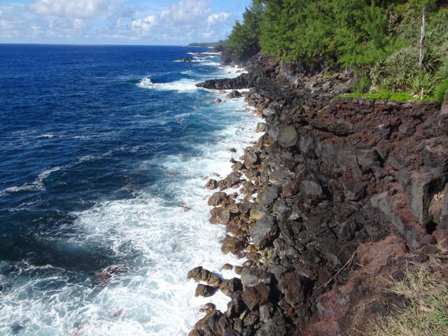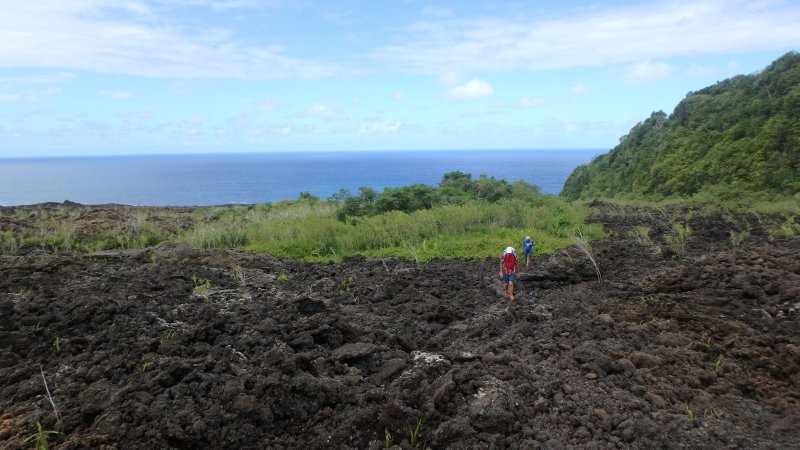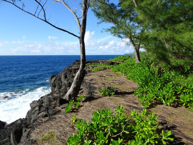 Agréable boucle qui permet d'approcher divers paysages:la piste verte et ombragée vers le vieux port; le sentier littoral avec fougères, pandanus et goyaviers au dessus d'une côte déchiquetée et la traversée de la coulée récente de 2007 (j'ai préféré remonter par le bord "rive gauche " de la coulée au lieu du bord "rive droite" prévu sur ce site pour profiter encore un peu plus des paysages lunaires de ces laves en traversant carrément la coulée de 2007. Pas de difficulté particulière quand on aime et qu'on a l'habitude des différents types de laves-bien sûr être prudent avant de poser le pied.....J'ai bien aimé.