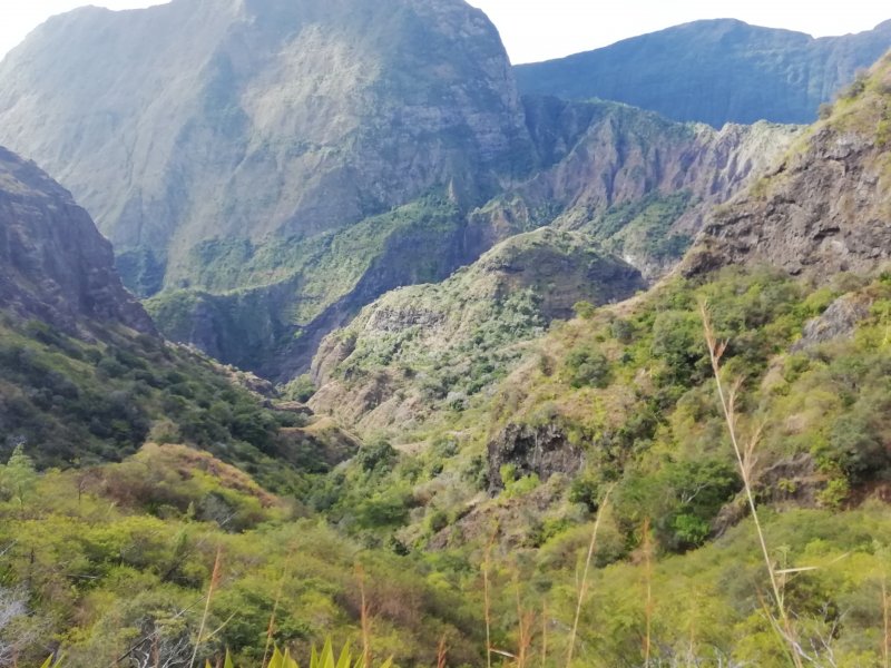 Il est impossible de retrouver les dizaines d'îlets oubliés et disséminés sur l'île. Fermés et laissés à la végétation depuis des décennies, on connait leur emplacement grâce à leurs noms sur les cartes mais les sentiers, cases, champs ont totalement disparu. Seul les manguiers aperçus aux jumelles sur certaines parties plates laissent à croire qu'un jour, des familles entières ont grandi dans ces coins reculés et isolés de tout. L'îlet Moutou, abandonné il y a bientôt 40 ans suite à quelques cyclones, glissements de terrain ou manque d'eau résiste à sa manière dans un environnement hostile et grandiose à la fois, juché sur un petit plateau dominé par des pitons infranchissables et friables. Il domine la vallée du Bras d'Oussy, le Piton Diable et les habitants devaient apercevoir à la nuit tombée les lumières d'autres îlets abandonnés comme les Fougères, Palmistes ou Bambou. Du promontoire qui domine la petite case encore debout, on a vraiment envie de planter là une toile de tente pour trois nuits et profiter des paysages uniques et sauvages. Le sentier, très étroit qui mène sur le plateau et encore facile à suivre et ne présente guère de danger même si les herbes, galaberts et fougères tentent de se l'approprier.