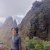 La randonnée débute aux Thermes de Cilaos, à quelques mètres de l'entrée de l'établissement. Le sentier débute par quelques marches sous un gros eucalyptus. La montée est faible sur terre, cailloux ou racines (Photo 1). Délaisser les sentiers partant dans tous les sens en restant toujours sur le GR. On arrive à un point de vue sur le Grand Bénare, le Nez de Bœuf et les petites cascades de la Ravine Prudent (Photo 4). Le sentier est assez plat jusqu'au franchissement de la ravine sur de larges rochers. Il monte ou descend ensuite plusieurs fois sans aucune difficulté. En se retournant, on bénéficie de beaux points de vue sur le Piton des Neiges. Souvent ombragé, le sentier est plutôt humide et longe la courbe de niveau pour contourner le Bonnet Carré (Photo 3). Un passage rocheux est sécurisé par un long câble (Photo 6). Débute alors une longue descente dans les bois de joli cœur ou bois d'arnette parmi les chocas pour rejoindre la route de l'Îlet à Cordes (Photo 9. Les lacets déjà courts de la première partie deviennent encore plus serrés et caillouteux. Les marches sont hautes et la pente forte jusqu'au Bras Rouge qu'on traverse à gué près d'une belle chute d'une dizaine de mètres (Photo 10). Comme il y a peu de chances de mouiller les chaussures sur le circuit, ne pas hésiter à les ôter pour conserver les pieds au sec. La montée peut commencer sur un sentier identique à celui de la descente (Photo 11). Il passe à un moment sous les filaos où poussent également chocas et galaberts. De lacets en lacets, on parvient à la route pour prendre juste en face les escaliers vers le Taïbit. Ces escaliers bien maçonnés ne durent pas et ce sont les lacets courts, rocheux ou maintenus de planches qui prennent le relais (Photo 12). Profiter des panoramas sur la Tête de Lion, les cascades Pitsa, la ville de Cilaos ou le Dimitile à l'horizon. Il faut une bonne demi-heure pour atteindre l'îlet des Salazes et son distributeur de tisanes. On peut se désaltérer s'il n'y a personne ; il est plus sympa de ne pas oublier la boite à donations près des bidons. Plus haut, après avoir passé plusieurs sources domestiquées, le sol se couvre d'énormes rochers tombés des cimes, répartis dans un bois de pins coupés où poussent encore quelques grands cyprès. La pente est toujours la même, terreuse et glissante parfois. Un premier replat dans un cadre de verdure enchanteur (Photo 13) permet de reposer un peu les jambes jusqu'à la Source Ti Louis. Les barbes de Jupiter recouvrent les arbres et les merles jacassent sans arrêt. Un deuxième replat mérite bien son nom de Plaine des Fraises car elles poussent très dru près du sentier qui chemine à plat. L'arrivée au col devient de plus en plus raide et franchit des endroits un peu vertigineux et même un éboulis très bien sécurisé. Au col, les amateurs de larges panoramas ont créé une trace pour grimper au sommet pointu, sur la droite. La descente débute sur un sentier étroit, bordé de jouvences et tout aussi caillouteux avec de magnifiques vues sur le Cirque de Mafate, le Kerval et l'îlet de Marla (Photo 21). Les marches en bois prennent le relais (Photo 22) puis le sentier part sur la droite pour longer la falaise dans une partie très minérale où les glissades sont possibles. Marla se traverse sans difficulté (Photo 23) en cherchant des yeux la plus jolie case. Plus bas, ce sont des prairies jaunes et vertes qui attirent le regard. Près de la chapelle, monter sur le gros rocher et admirer le troupeau de biches (Photo 24) qui vivent ici, sereines, puisqu'elles ne savent pas qu'elles finiront en cari, dévorées par les randonneurs qu'elles ont si souvent regardé passer. On franchit quelques ruisseaux venant du Plateau de Kerval sous les filaos envahis de bringeliers, galaberts ou autres jouvences. Le bruit de la Rivière des Galets se fait de plus en plus entendre mais il faudra la longer longuement avant de rejoindre le magnifique endroit entourant la passerelle Joset Ethève (Photo 26). Grimper une centaine de mètres pour franchir un petit col et partir en direction de la Nouvelle sous les filaos. Au Bord de Mars, laisser le sentier à plat à droite et plonger vers le Gîte Gravina par le GR. Le sentier de l'îlet est en bien meilleur état que le GR trop souvent délaissé. Les jouvences ont envahi les bords et il faut toujours avoir les yeux au sol pour éviter le ravin tout proche (Photo 27). C'est par de nouvelles montées plus ou moins prononcées qu'on rejoint la Nouvelle pour se reposer avant de repartir le lendemain en direction de Hell Bourg.