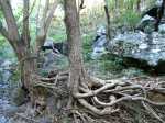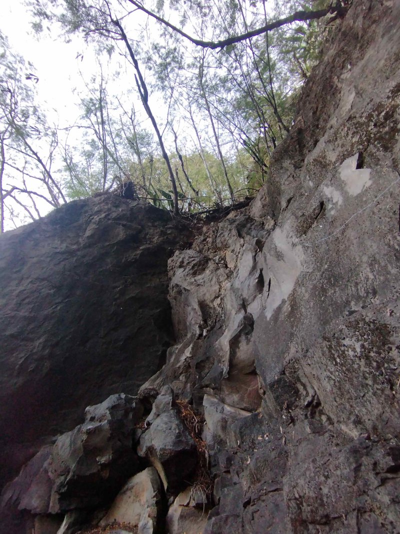 Rien à voir avec la ravine Goyaves pourtant toute proche, beaucoup plus attractive! ici ravine sèche, aride mais facile à remonter ;un Petit Poucet a même posé tout le long des cairns...puis changement de décor: bassins saumâtres, papyrus, et liane papillon "casse gueule" :on avance "à l'aveuglette" ! mais sans possibilité de se perdre .Je comprends facilement pourquoi orando974 , Fanch et JPG n'ont pas insisté. Retour obligatoire par le même chemin entre d'immenses falaises escarpées pourtant si proches de l'océan. Pour les inconditionnels qui aiment "gambader " dans les ravines (c'est mon cas).Temps très bien estimé de 2h30 .Le rêve de remonter jusqu'à la route Hubert Delisle semble difficile à réaliser sauf avec un coupe coupe et beaucoup, beaucoup de volonté....