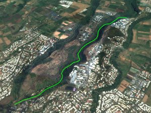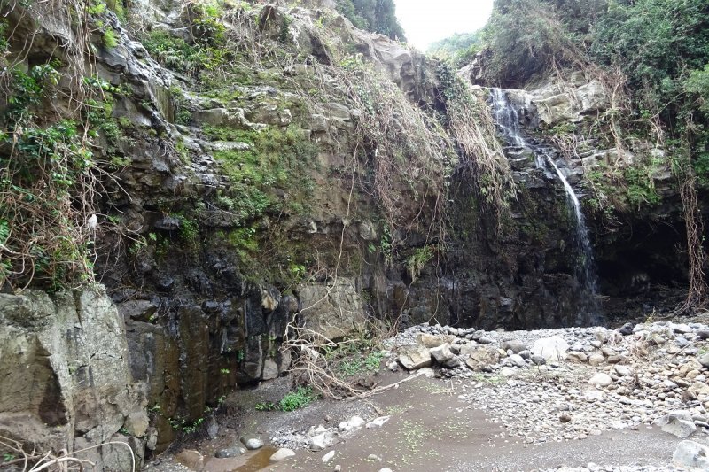 La randonnée débute au carrefour de la route de Maison Rouge, juste après avoir franchi le radier sur la ravine du Gol. Une piste en terre part près d'une zone qui fut un temps un jardin paysager mais qui mériterait un sérieux ravalement. La balade d'échauffement (Photo 1) se termine rapidement et la piste se transforme en sentier (Photo 2). Vu sa largeur et la qualité, on se dit que la remontée de la Ravine Barrage ou Ravine de Maison Rouge, sera un plaisir. Le sentier remonte le fond de la ravine en s'approchant de véritables murailles de tôle ondulée derrière lesquelles les bêlements et caquètements renseignent sur l'utilité de ces clôtures. Très vite, la trace s'estompe puis disparaît et la remontée s'effectue en cherchant des yeux le meilleur passage ou les quelques traces laissées par les chasseurs de guêpes. Peu de difficultés car la végétation est assez clairsemée et les rochers rarement très hauts. Quelques manguiers ont poussé aléatoirement en bordure de ravine (Photo 3). Les berges passent immédiatement du fond rocheux à des falaises infranchissables (Photo 5). La balade alterne partie plates, passages rocheux (Photo 6) ou végétalisés (Photo 7). A mi-parcours, des tuyaux indiquent enfin que l'eau peut exister en ces lieux arides puisque plusieurs tuyaux en mauvais état jonchent le sol (Photo 10). Plus haut, un bassin et un filet d'eau qui coule directement dans un gros tuyau explique en partie la partie sèche déjà parcourue (Photo 12). A partir de ce bassin, l'eau est toujours présente, soit dans des bassins croupissants couverts de lentilles d'eau soit sous les rochers où ils produisent cette douce musique aquatique. Sans transition, la végétation, déjà dense, bouche la totalité du fond de la ravine. La grotte en rive gauche, visible au bas d'une barre rocheuse dans un virage de la rivière s'approche au prix de quelques griffures (Photo 16) mais il est raisonnable de faire demi-tour alors qu'on est loin d'avoir atteint la route Hubert Delisle. La descente prend un peu moins de temps que la descente en tentant de reprendre le même itinéraire que dans la montée.
