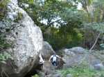 Retour rapide à la Ravine "barrage", non pas pour atteindre la grotte terminale mais pour rechercher des faiblesses soit côté Roche Maigre soit côté Maison Rouge.