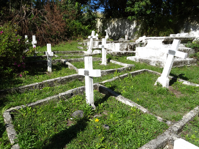A l'est de la Ressource, près de la Ravine des Figues, se trouve un des plus petits cimetières de la Réunion. Il est chargé d'histoire (voir § ci-dessous) et plusieurs panneaux explicatifs sont là pour renseigner les rares touristes ayant eu vent de sa présence dans ce lieu reculé. La lecture des panneaux est rapide ainsi que la visite de la trentaine de tombes des jésuites ou de la famille Gaudin de Lagrange. L'endroit est calme à l'ombre d'énormes camphriers (Photo 8) qui plus est, bien entretenu. La randonnée proposée à quelques pas d'ici est certes très courte mais permet de se balader un peu dans un sous-bois dominé par de gros bambous qui craquent et couinent au vent et par des dizaines de fins palmiers élancés. Le fond de la ravine qui ne doit avoir de l'eau qu'épisodiquement peut également se parcourir sans difficulté ni danger. Des randonneurs amateurs d'histoire de La Réunion ne manqueront pas de rajouter des commentaires sur l'état d'avancement des travaux afin de peaufiner la fiche et donner à beaucoup l'envie de visiter ce lieu de repos éternel.