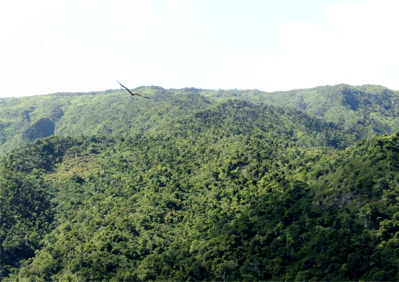 Le Parc de Rivière Noire, merveille de la nature, a été créé il y a déjà plus de 20 ans. La région est traversée par une multitude de sentiers pédestres qui se croisent souvent et permettent ainsi de se concocter une vingtaine de circuits différents. Il y en a pour tous les mollets, de ceux des enfants sur de larges pistes entretenues à ceux des traileurs sur des sentiers escarpés, étroits et parfois en forte pente. La boucle présentée ici s'adresse à des sportifs entraînés même si une bonne partie du parcours emprunte de larges pistes. Il commence et revient au centre d'information de Petite Rivière Noire située non loin de l'océan, du côté du village de Grande Rivière Noire. On bénéficie très souvent de magnifiques panoramas sur les vallées encaissées couvertes de bois de couleurs, hélas de plus en plus envahies de goyaviers de Chine. La faune n'est guère importante cependant on est certain de voir au moins une fois un couple de perruches vertes, de roussettes noires et d'entendre fouiner ou grogner les cochons sauvages qui abîment sous-bois et sentiers par leurs labourages. Le parc est très propre, des poubelles habilement camouflées sont installées à tous les points de vue. D'importantes équipes d'ouvrières œuvrent à éradiquer les envahissantes pour rendre aux sentiers empruntés un maximum de bois de couleurs qui représentaient au siècle dernier l'essentiel de la végétation des forêts. Des zones grillagées ponctuent le parc et permettent d'isoler des espèces endémiques afin de les conserver le plus longtemps possible.