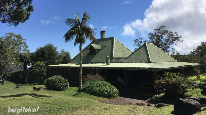 La randonnée débute au Coteau Monique, près de la barrière fermant la route vers le gîte et du départ du Sentier de l'Ecole Normale. Absolument aucune difficulté pour descendre vers le Trou de Fer sur de longs platelages de bois de tamarin recouverts de grillage antidérapant (Photo 1). Hélas, le climat humide détériore tranquillement ces longs caillebotis tellement pratiques pour apprécier la forêt primaire sans chercher où poser les pieds (Photo 3). C'est le royaume des fougères de toutes tailles, des arbres moussus et des épiphytes (Photo 4). L'essentiel du trajet s'effectue en descente avec un court passage sur la piste (Photo 6). Les planchers disparaissent parfois dans la deuxième partie passant au plus près de la Grande Mare qui diminue de jour en jour à cause de l'envahissement des joncs (Photo 7). Quelques courtes montées sur escaliers (Photo 11) permettent de rejoindre le sentier venant de la piste cavalière où un banc permet de se reposer si nécessaire. Plus loin, c'est une très forte descente (Photo 12) qui permet de se rendre en moins de 10 minutes à un large belvédère pour admirer les cascades dont le bruit est souvent couvert par celui des palles d'hélicoptères (Photo 13). Le paysage est grandiose et fait oublier le bruit des machines ; tout le monde ne peut pas ou ne souhaite pas forcément marcher jusque là. Prendre le même sentier pour remonter au premier croisement. Un petit panneau précise qu'il est boueux et recommande d'emprunter la piste cavalière mais ce n'est pas une aventure insurmontable que d'affronter la boue sur deux kilomètres (Photo 14). La progression n'a rien à voir avec la marche sur plancher mais la distance est courte. Le sentier se termine à la piste qu'on emprunte en partant à droite. Le détour est rapide pour rendre une visite à la Reine des Tamarins, couchée sur la flanc mais toujours vivante malgré les centaines de piétinements de randonneurs sur son écorce. Un peu plus loin, on retrouve le Sentier du Trou de Fer qui rejoint le gîte par quelques dents de scie pour franchir la Ravine des Fleurs Jaunes et le Bras de Caverne. Si le temps est beau, traverser les bâtiments du gîte pour profiter des panoramas sur Salazie puis entamer la montée vers le Piton des Neiges. La piste, large et facile, débute au gîte et se termine à un nouveau belvédère et à une antenne relais (Photo 18). Le sentier vers le Cap Anglais la remplace et grimpe dans une nouvelle zone de forêt primaire sur quelques portions boueuses. Certaine spécimens de tamarins sont impressionnants (Photo 20). Beaucoup sont penchés et créent des arches végétales qui obligent à se pencher. Au premier croisement, laisser le sentier vers le Piton des Neiges et entamer la descente sur le sentier des Tamarins. Il est, comme son nom l'indique, bordé également de beaux tamarins et traverse une plantation de 1987 (Photo 21). Le cheminement, dépourvu de boue, est très agréable sur les feuilles mortes de tamarins (Photo 22). Après une courte portion de piste, le Sentier de la Vierge débute dans un virage et descend vers le Bras de Caverne qu'on franchit près d'un bassin aux eaux sombres bordées d'une grande grotte. Attention aux pierres glissantes en franchissant le gué. On passe près de nouveaux beaux tamarins (Photo 26) avant de rejoindre la piste qui remonte vers le rempart. Prendre à gauche sur 200 mètres avant de trouver la route de Bélouve puis le Coteau Monique sur la droite, fin de la boucle.